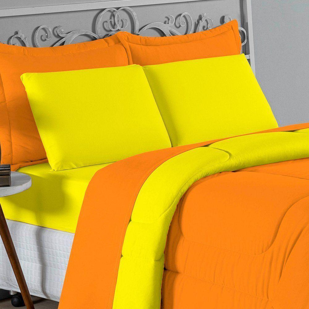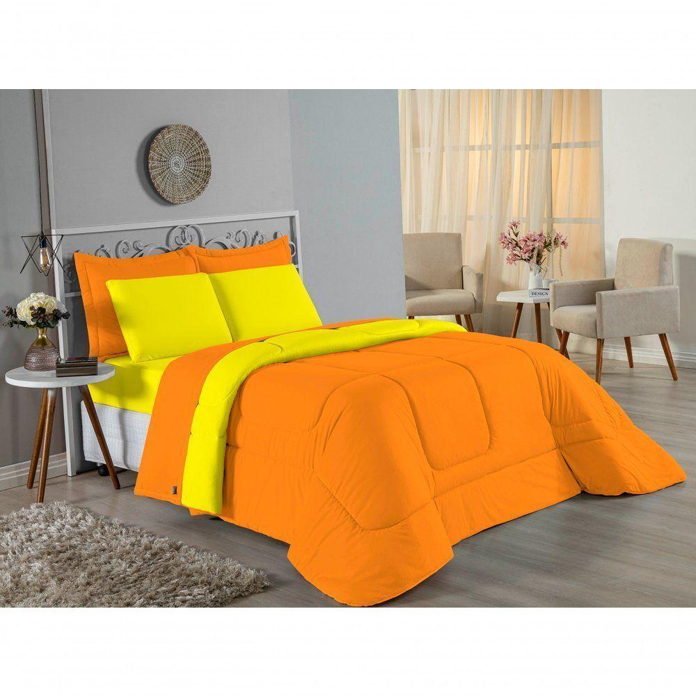 Edredom Queen Nobre 1 Peça Dupla Face 2,20m X 2,40m Malha 100% Algodão - Laranja / Amarelo