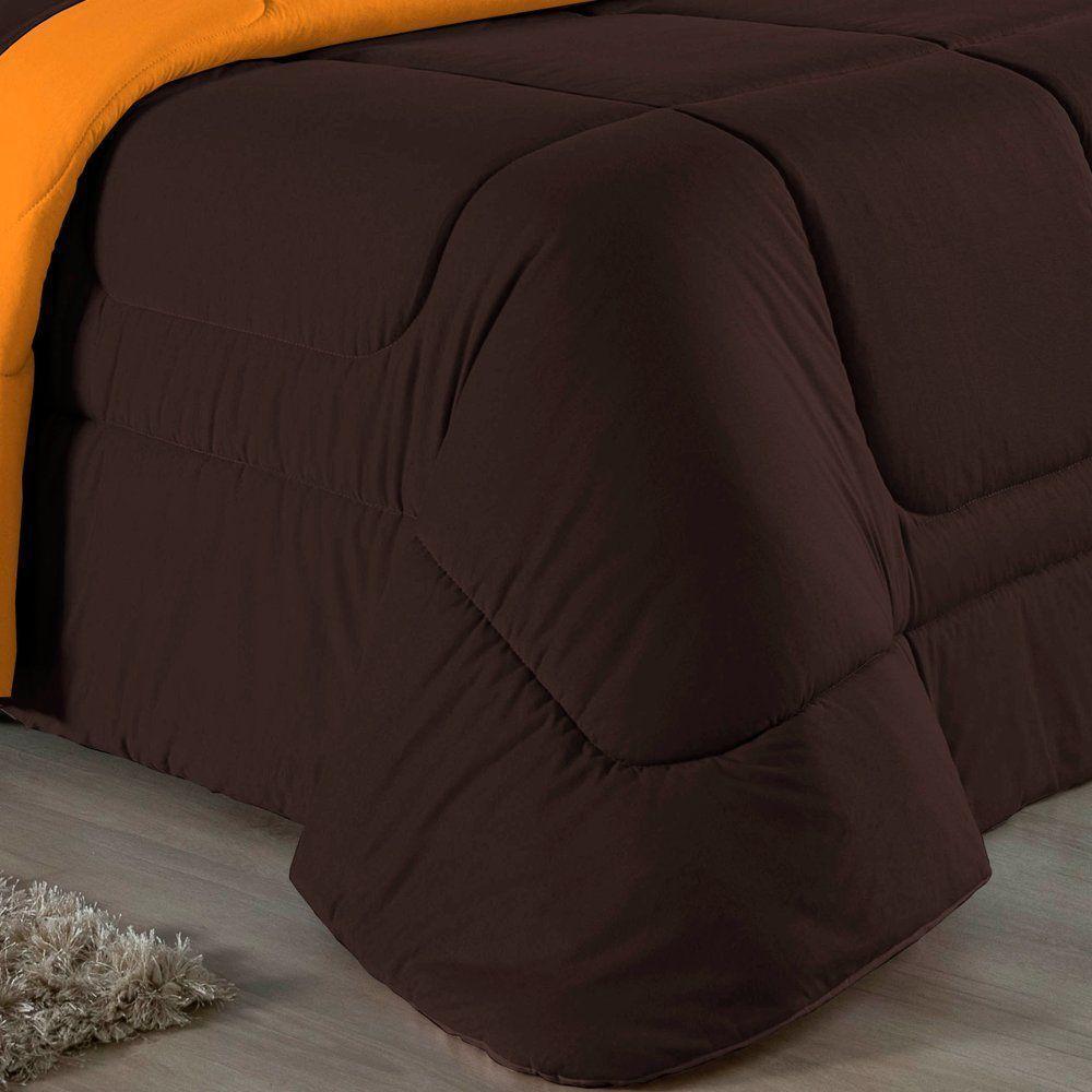 Edredom Queen Nobre 1 Peça Dupla Face 2,20m X 2,40m Malha 100% Algodão - Marrom / Laranja