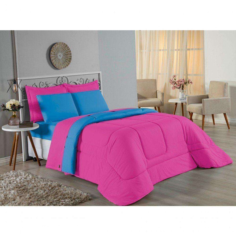 Edredom Queen Nobre 1 Peça Dupla Face 2,20m X 2,40m Malha 100% Algodão - Pink / TurquesaGaranta o aconchego que sua cama Queen merece com o Edredom Queen Nobre. Uma peça essencial para quem busca a combinação ideal entre o conforto térmico e a suavidade incomparável do algodão em fio penteado.Por que o Edredom Queen Nobre é uma ótima escolha?- Toque de Malha Premium: Confeccionado em 100% Algodão com Fio 30/1 Penteado, oferece uma sensação de abraço, sendo extremamente macio ao toque.- Design Dupla Face: Com acabamento liso em ambos os lados, permite diversas composições na decoração do quarto, unindo praticidade e estilo.- Qualidade Superior: O processo de fio penteado garante um tecido mais uniforme, resistente e livre de bolinhas, mantendo a beleza da peça por muito mais tempo.- Conforto Térmico Ideal: O enchimento em fibra de poliéster siliconada proporciona o volume certo para aquecer sem pesar, garantindo noites de sono perfeitas.Produto composto por (Total 01 Peça):01 Edredom Queen Dupla Face 2,20m x 2,40mComposição:Tecido: Malha 100% Algodão - Fio 30/1 PenteadoEnchimento: 100% Poliéster Siliconada