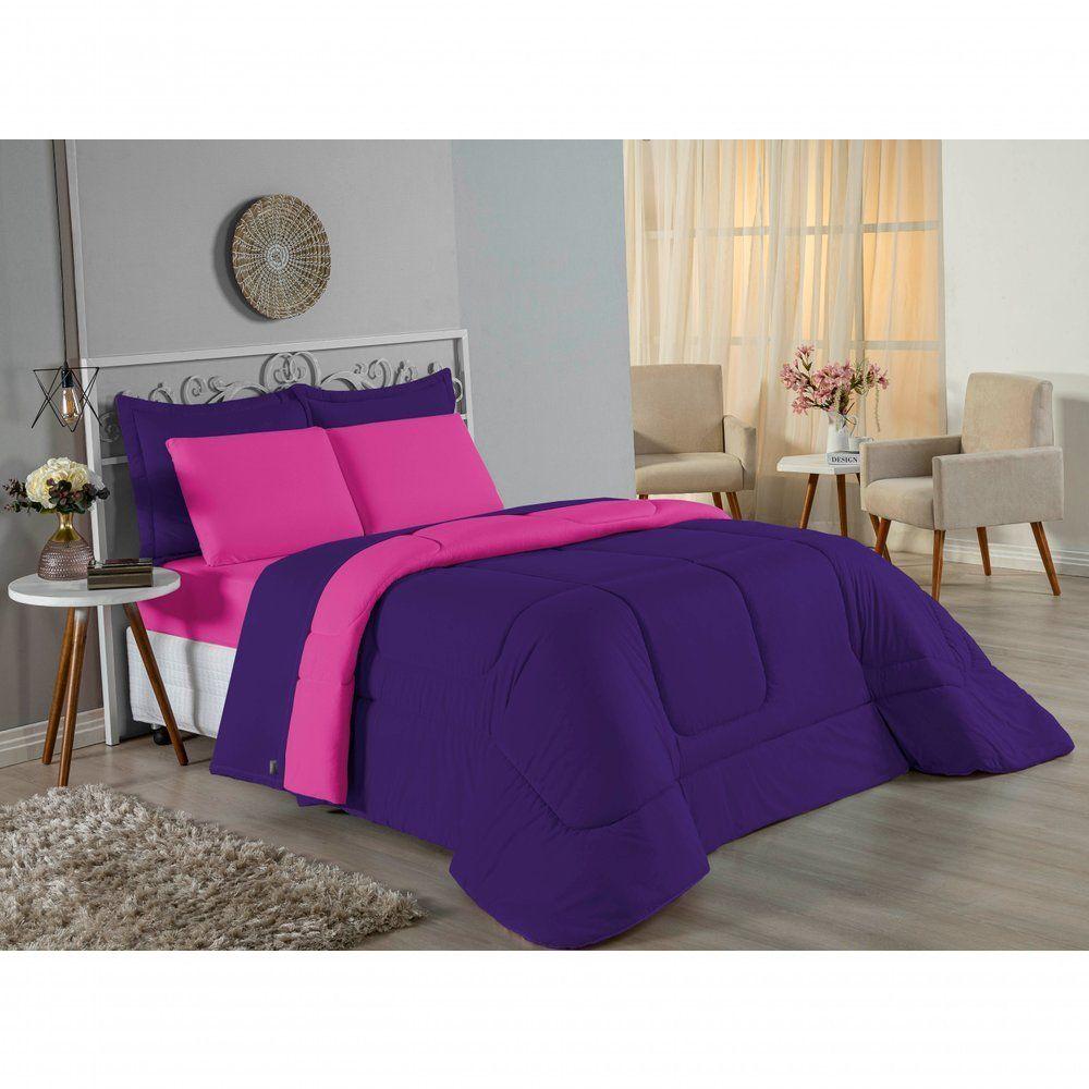 Edredom Queen Nobre 1 Peça Dupla Face 2,20m X 2,40m Malha 100% Algodão - Roxo / PinkGaranta o aconchego que sua cama Queen merece com o Edredom Queen Nobre. Uma peça essencial para quem busca a combinação ideal entre o conforto térmico e a suavidade incomparável do algodão em fio penteado.Por que o Edredom Queen Nobre é uma ótima escolha?- Toque de Malha Premium: Confeccionado em 100% Algodão com Fio 30/1 Penteado, oferece uma sensação de abraço, sendo extremamente macio ao toque.- Design Dupla Face: Com acabamento liso em ambos os lados, permite diversas composições na decoração do quarto, unindo praticidade e estilo.- Qualidade Superior: O processo de fio penteado garante um tecido mais uniforme, resistente e livre de bolinhas, mantendo a beleza da peça por muito mais tempo.- Conforto Térmico Ideal: O enchimento em fibra de poliéster siliconada proporciona o volume certo para aquecer sem pesar, garantindo noites de sono perfeitas.Produto composto por (Total 01 Peça):01 Edredom Queen Dupla Face 2,20m x 2,40mComposição:Tecido: Malha 100% Algodão - Fio 30/1 PenteadoEnchimento: 100% Poliéster Siliconada