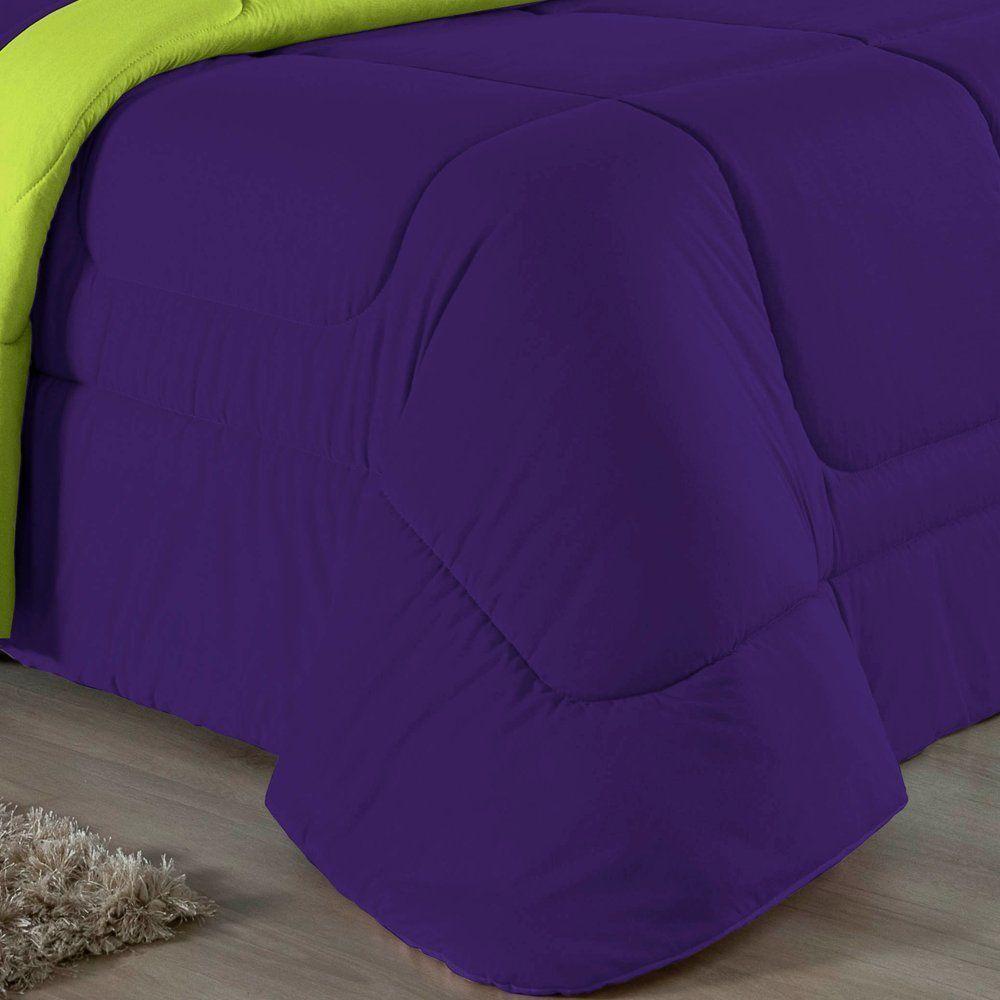 Edredom Queen Nobre 1 Peça Dupla Face 2,20m X 2,40m Malha 100% Algodão - Roxo / Pistache