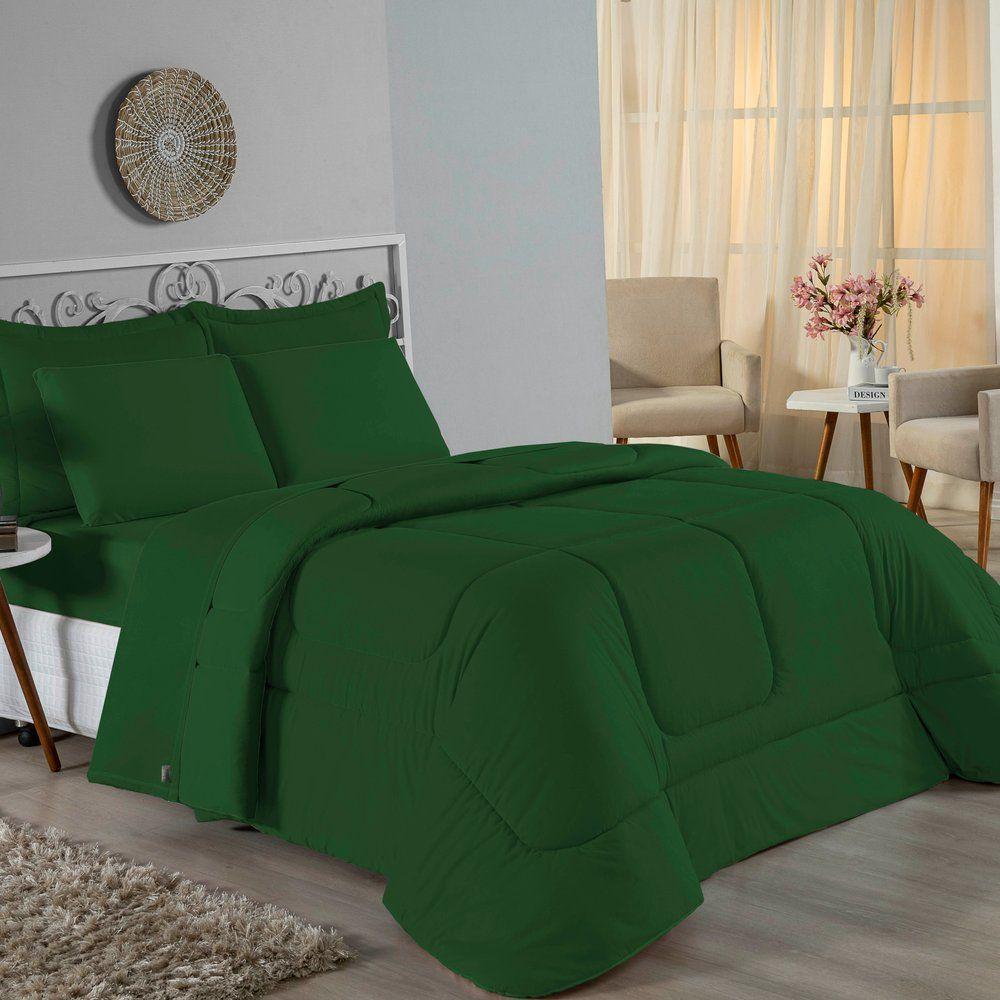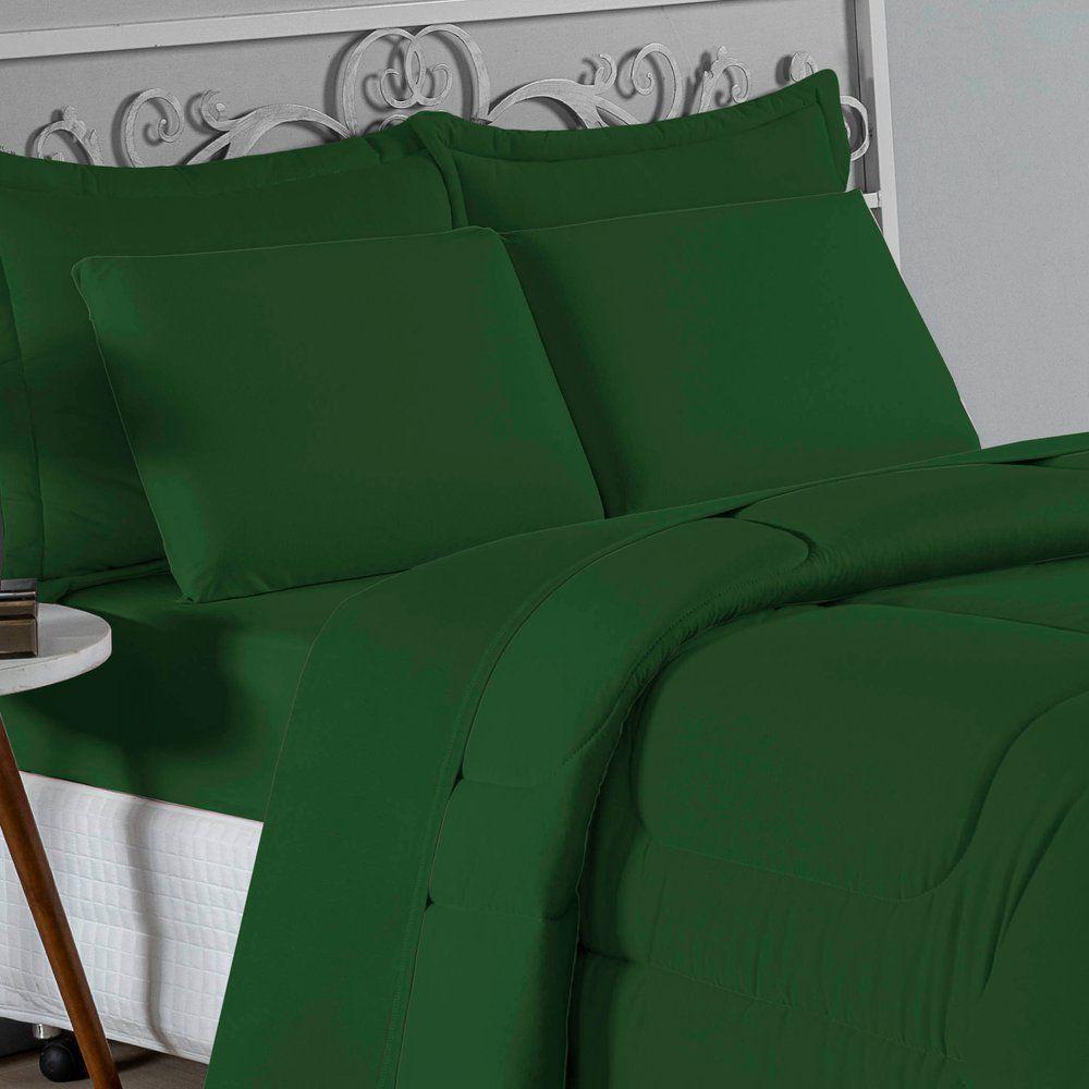 Kit Edredom Dupla Face + Jogo De Lençol Casal Nobre 7 Peças Malha 100% Algodão - Verde-bandeira