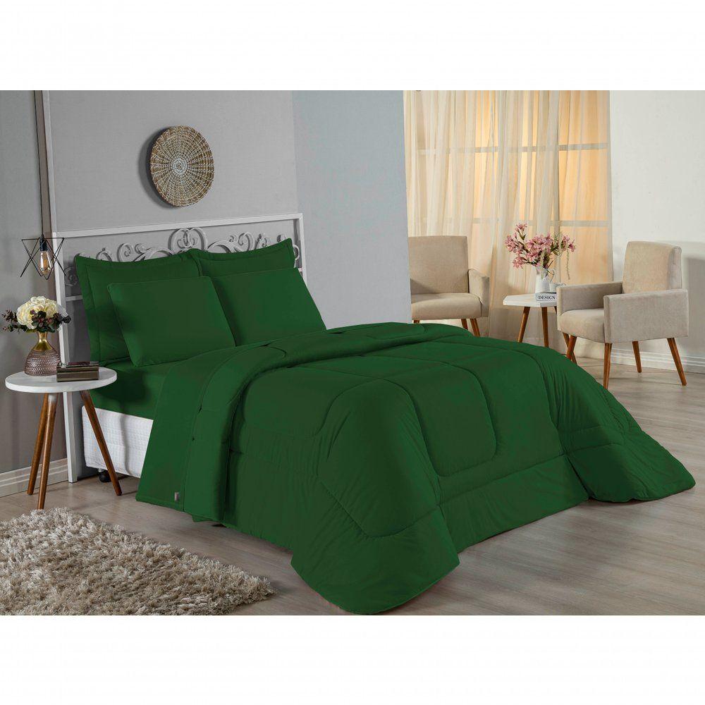 Kit Edredom Dupla Face + Jogo De Lençol Casal Nobre 7 Peças Malha 100% Algodão - Verde-bandeiraVista sua cama com elegância total e conforto absoluto com o Kit Cama Completa Casal Nobre 7 Peças. A solução definitiva para quem busca um enxoval completo, coordenado e com a maciez irresistível da malha de algodão.Por que este Kit é uma ótima escolha?- Jogo Completo 7 Peças: Inclui edredom, porta travesseiros decorativos e o jogo de cama completo (com lençol de cima e de baixo), oferecendo a experiência completa de conforto.- Malha Premium: Confeccionado em 100% Algodão Fio 30/1 Penteado, garantindo um toque suave, natural e livre de bolinhas.- Versatilidade na Decoração: O edredom dupla face permite variar o visual, enquanto o lençol de cima com vira adiciona charme à cama posta.- Aconchego e Praticidade: Une o aquecimento do edredom à facilidade do lençol com elástico, perfeito para o dia a dia.Produto composto por (Total 07 Peças):Do Kit Edredom (03 Peças):01 Edredom Casal Dupla Face: 2,00m x 2,20m02 Porta Travesseiros Matelados: 50cm x 70cmDo Jogo de Lençol (04 Peças):01 Lençol de Cima (Virol): 2,40m x 2,20m01 Lençol de Baixo com Elástico: 1,38m x 1,98m x 30cm02 Fronhas: 70cm x 50cmComposição:Tecido (Todas as peças): Malha 100% Algodão - Fio 30/1 PenteadoEnchimento (Edredom e Porta Travesseiros): 100% Poliéster (Edredom com fibra siliconada)Forro (Apenas Porta Travesseiros): 100% Polipropileno