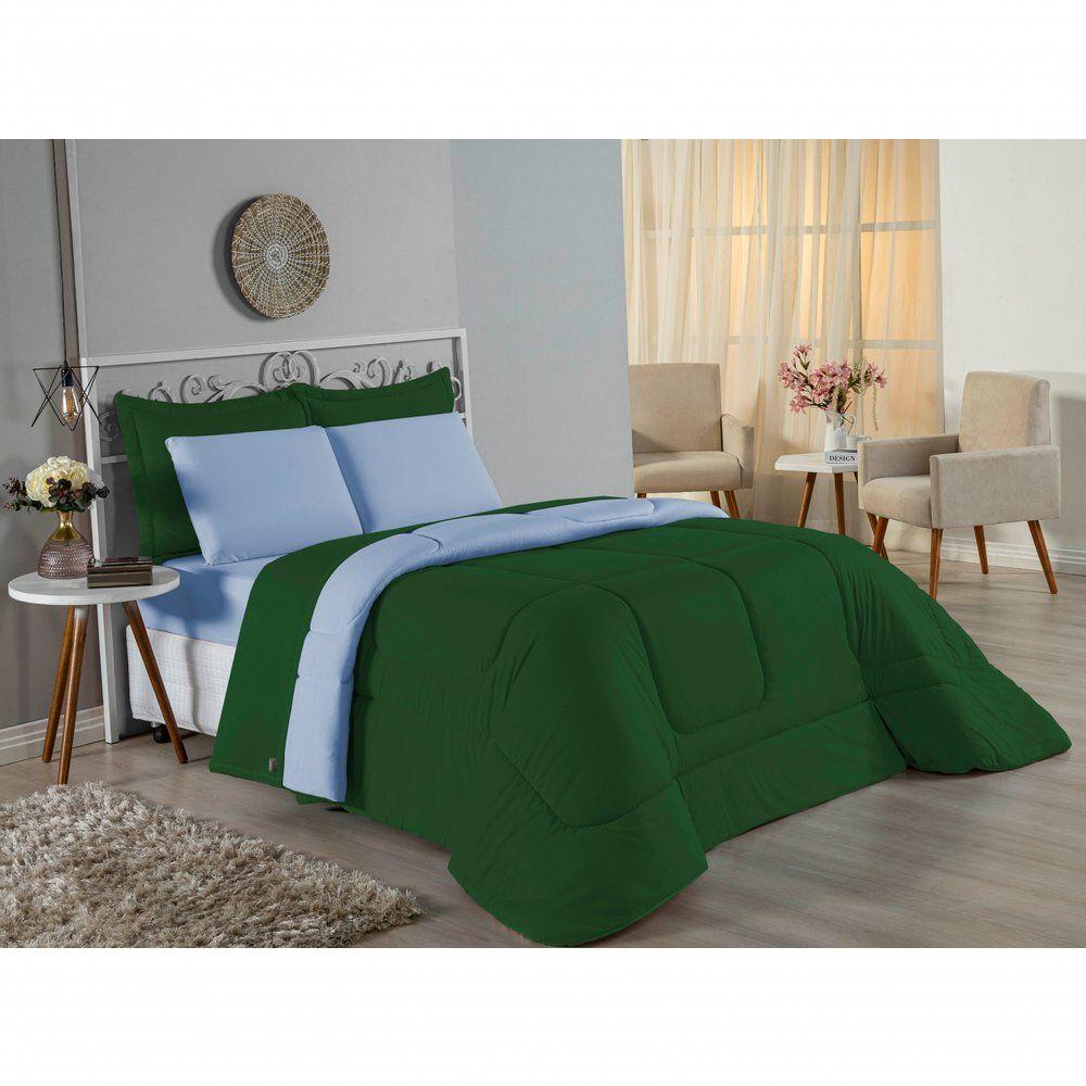 Edredom Queen Nobre 1 Peça Dupla Face 2,20m X 2,40m Malha 100% Algodão - Verde-bandeira / Azul-bebêGaranta o aconchego que sua cama Queen merece com o Edredom Queen Nobre. Uma peça essencial para quem busca a combinação ideal entre o conforto térmico e a suavidade incomparável do algodão em fio penteado.Por que o Edredom Queen Nobre é uma ótima escolha?- Toque de Malha Premium: Confeccionado em 100% Algodão com Fio 30/1 Penteado, oferece uma sensação de abraço, sendo extremamente macio ao toque.- Design Dupla Face: Com acabamento liso em ambos os lados, permite diversas composições na decoração do quarto, unindo praticidade e estilo.- Qualidade Superior: O processo de fio penteado garante um tecido mais uniforme, resistente e livre de bolinhas, mantendo a beleza da peça por muito mais tempo.- Conforto Térmico Ideal: O enchimento em fibra de poliéster siliconada proporciona o volume certo para aquecer sem pesar, garantindo noites de sono perfeitas.Produto composto por (Total 01 Peça):01 Edredom Queen Dupla Face 2,20m x 2,40mComposição:Tecido: Malha 100% Algodão - Fio 30/1 PenteadoEnchimento: 100% Poliéster Siliconada