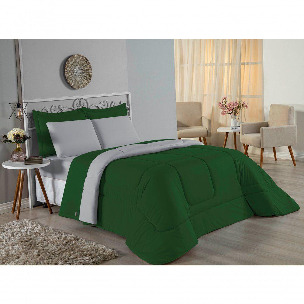 Edredom Queen Nobre 1 Peça Dupla Face 2,20m X 2,40m Malha 100% Algodão - Verde-bandeira / CinzaGaranta o aconchego que sua cama Queen merece com o Edredom Queen Nobre. Uma peça essencial para quem busca a combinação ideal entre o conforto térmico e a suavidade incomparável do algodão em fio penteado.Por que o Edredom Queen Nobre é uma ótima escolha?- Toque de Malha Premium: Confeccionado em 100% Algodão com Fio 30/1 Penteado, oferece uma sensação de abraço, sendo extremamente macio ao toque.- Design Dupla Face: Com acabamento liso em ambos os lados, permite diversas composições na decoração do quarto, unindo praticidade e estilo.- Qualidade Superior: O processo de fio penteado garante um tecido mais uniforme, resistente e livre de bolinhas, mantendo a beleza da peça por muito mais tempo.- Conforto Térmico Ideal: O enchimento em fibra de poliéster siliconada proporciona o volume certo para aquecer sem pesar, garantindo noites de sono perfeitas.Produto composto por (Total 01 Peça):01 Edredom Queen Dupla Face 2,20m x 2,40mComposição:Tecido: Malha 100% Algodão - Fio 30/1 PenteadoEnchimento: 100% Poliéster Siliconada