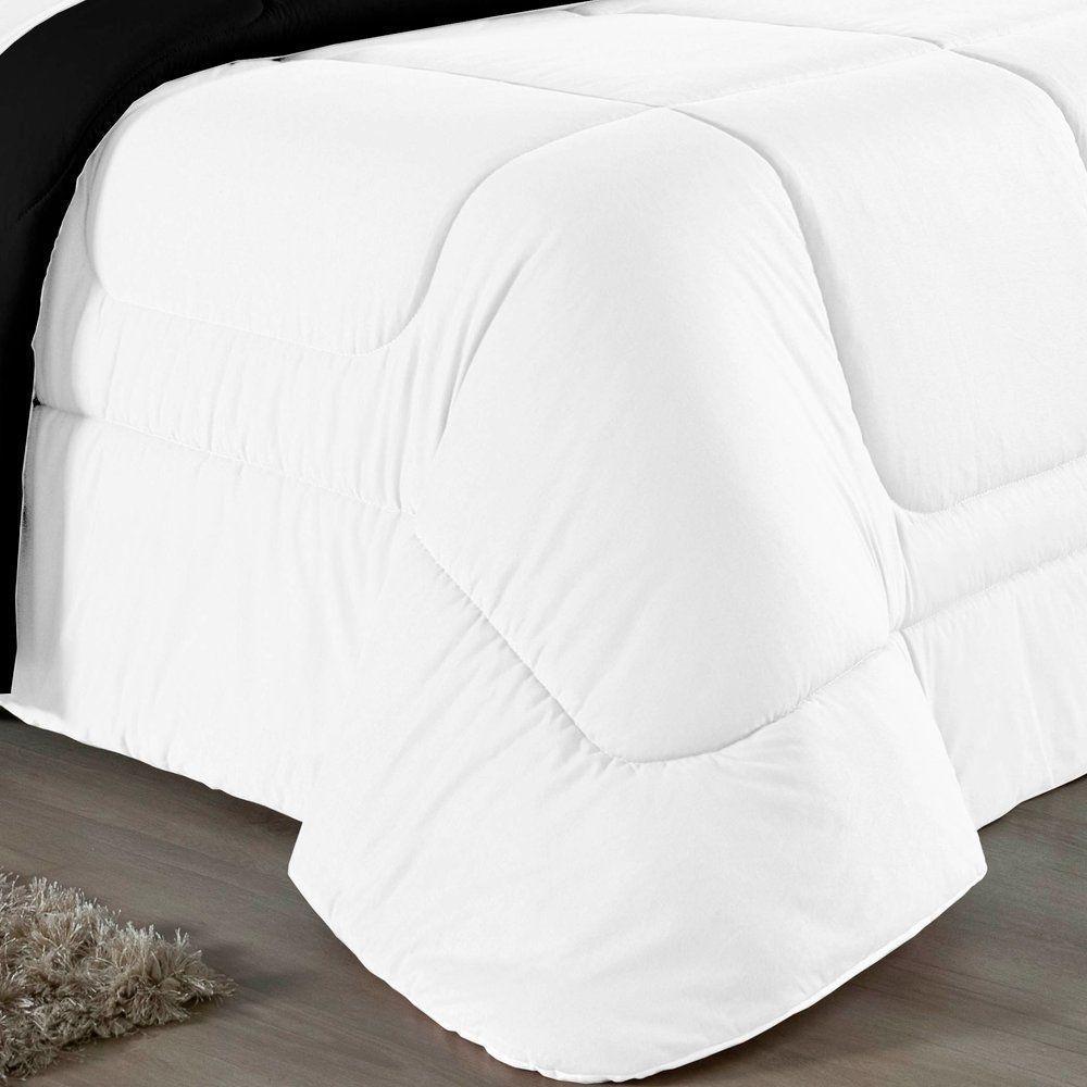 Kit Edredom Dupla Face + Jogo De Lençol Casal Viúva Nobre 6 Peças Malha 100% Algodão - Branco / PretoRenove o quarto das crianças ou de visitas com o Kit Cama Completa Casal Viúva Nobre 6 Peças. Uma solução prática e extremamente confortável que une o aquecimento do edredom, a elegância do porta travesseiro matelado e a suavidade do jogo de lençol em malha 100% algodão. Essa medida especial foi feita para as camas cama casal viúva ou solteiro viúva.Por que este Kit é uma ótima escolha?- Conforto da Malha Penteada: Todas as peças em contato com a pele são feitas em Malha 100% Algodão Fio 30/1 Penteado, garantindo toque macio, frescor e alta durabilidade sem formar bolinhas.- Cama Posta Coordenada: O kit já vem combinando! O edredom dupla face e o porta travesseiro decoram, enquanto o lençol e a fronha vestem o colchão com perfeição.- Praticidade do Elástico: O lençol de baixo possui elástico em toda a volta, facilitando a arrumação diária e garantindo que ele não escape do colchão.- Aconchego Térmico: O edredom com enchimento siliconado oferece o peso e o calor ideais para uma noite de sono tranquila.Produto composto por (Total 06 Peças):Do Kit Edredom (03 Peças):01 Edredom Casal Viúva Dupla Face: 2,00m x 2,20m02 Porta Travesseiro Matelado: 50cm x 70cmDo Jogo de Lençol (03 Peças):01 Lençol Casal Viúva com Elástico 1,28m x 1,98m x 30cm02 Fronha: 70cm x 50cmAtenção: Este kit é composto pelo jogo de cama essencial (lençol com elástico e fronha) e não inclui o lençol de cima (sobre lençol).Composição:Tecido (Todas as peças): Malha 100% Algodão - Fio 30/1 PenteadoEnchimento (Edredom e Porta Travesseiro): 100% Poliéster (Edredom com fibra siliconada)Forro (Apenas Porta Travesseiro): 100% Polipropileno