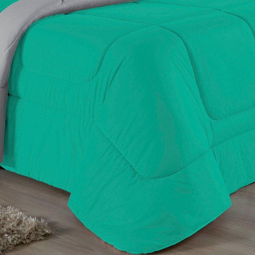 Edredom King Nobre 1 Peça Dupla Face 2,50m X 2,90m Malha 100% Algodão - Jade / Cinza