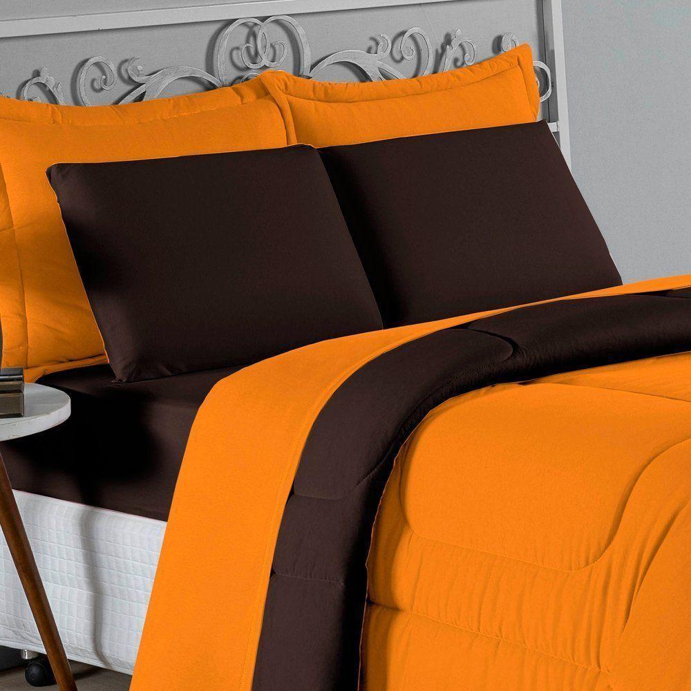 Edredom King Nobre 1 Peça Dupla Face 2,50m X 2,90m Malha 100% Algodão - Laranja / Marrom