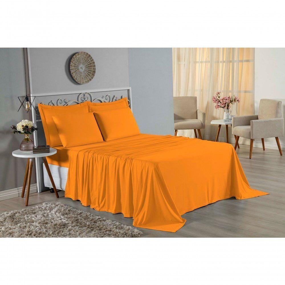 Jogo De Cama Casal Nobre 4 Peças Lençol Com Elástico De 30cm De Altura Malha 100% Algodão - Laranja