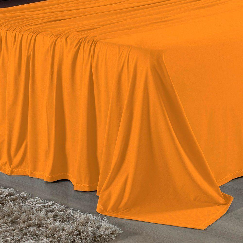 Jogo De Cama Casal Nobre 4 Peças Lençol Com Elástico De 30cm De Altura Malha 100% Algodão - Laranja / Marrom