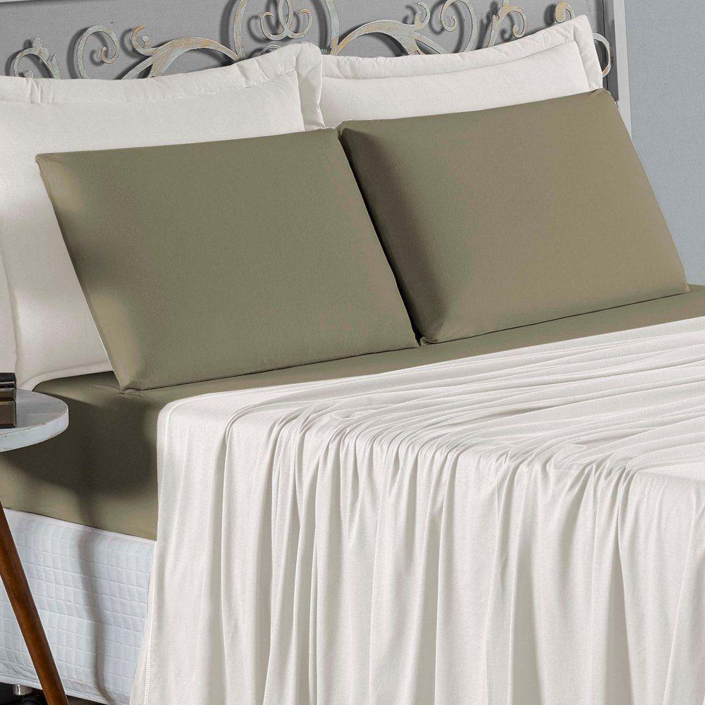 Jogo De Cama Casal Nobre 4 Peças Lençol Com Elástico De 30cm De Altura Malha 100% Algodão - Palha / Avelã