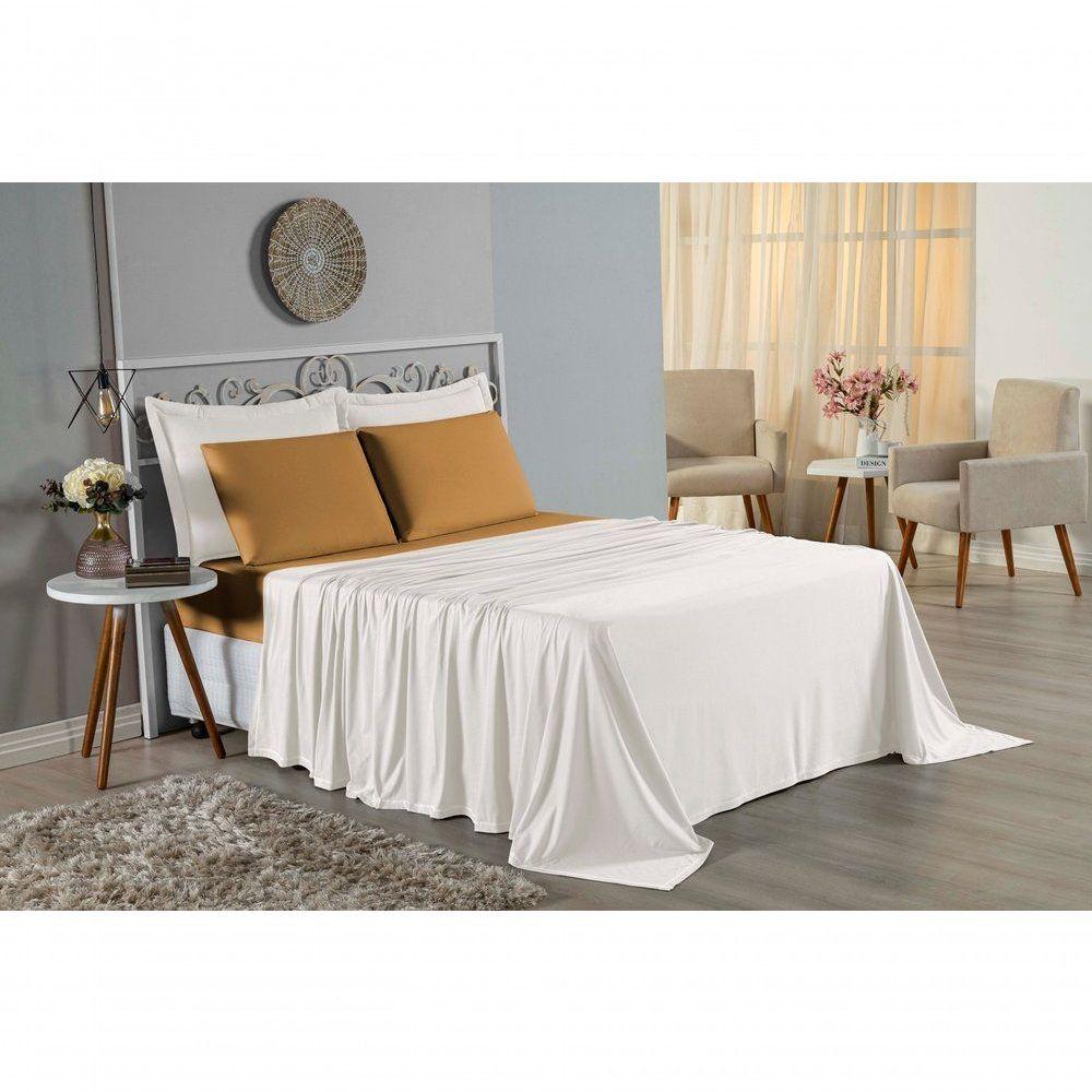 Jogo De Cama Casal Nobre 4 Peças Lençol Com Elástico De 30cm De Altura Malha 100% Algodão - Palha / Cobre