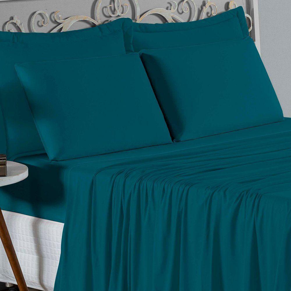 Jogo De Cama Casal Nobre 4 Peças Lençol Com Elástico De 30cm De Altura Malha 100% Algodão - Petróleo