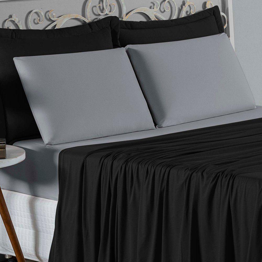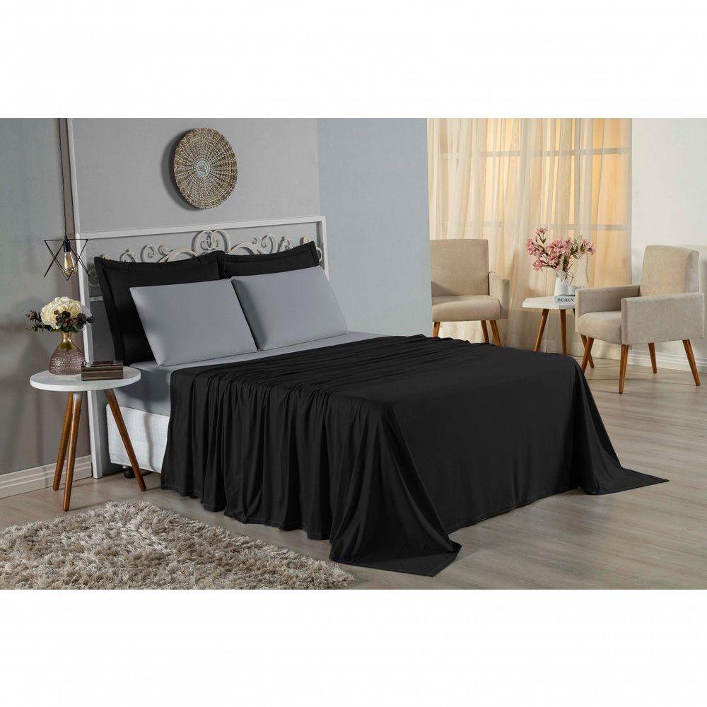 Jogo De Cama Casal Nobre 4 Peças Lençol Com Elástico De 30cm De Altura Malha 100% Algodão - Preto / Cinza