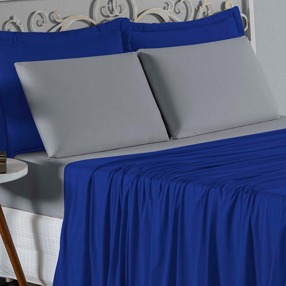 Jogo De Cama Casal Nobre 4 Peças Lençol Com Elástico De 30cm De Altura Malha 100% Algodão - Royal / Cinza