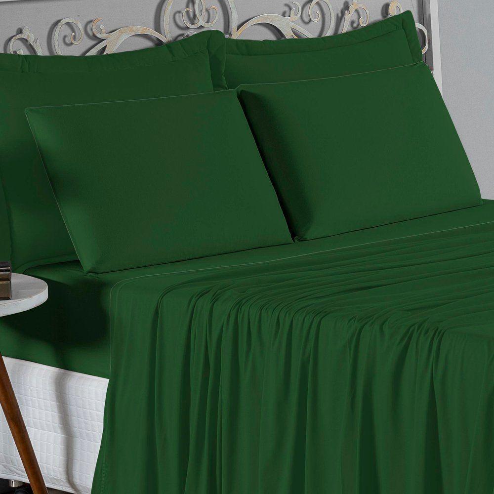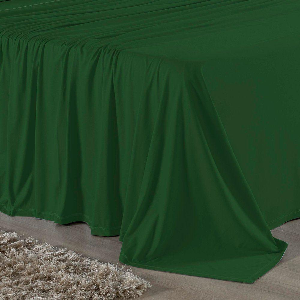 Jogo De Cama Casal Nobre 4 Peças Lençol Com Elástico De 30cm De Altura Malha 100% Algodão - Verde-bandeira