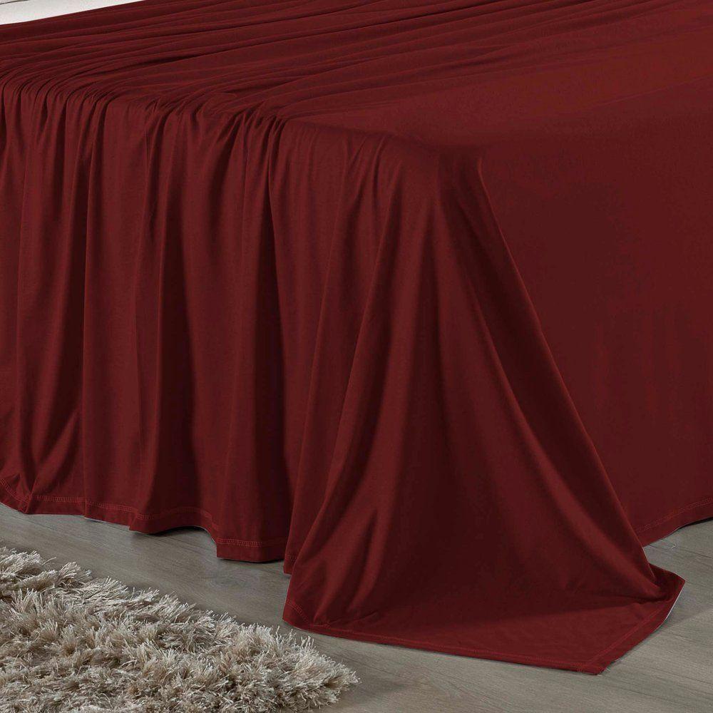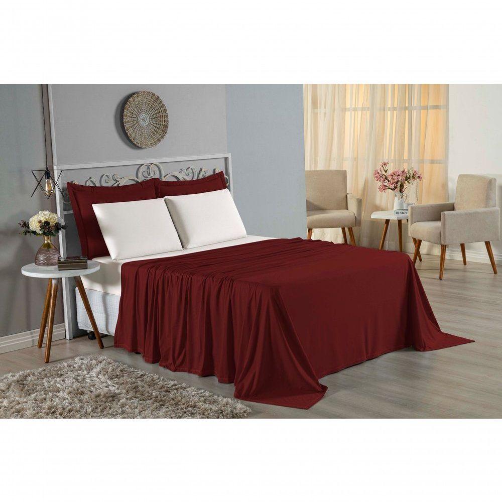 Jogo De Cama Casal Nobre 4 Peças Lençol Com Elástico De 30cm De Altura Malha 100% Algodão - Vinho / Palha