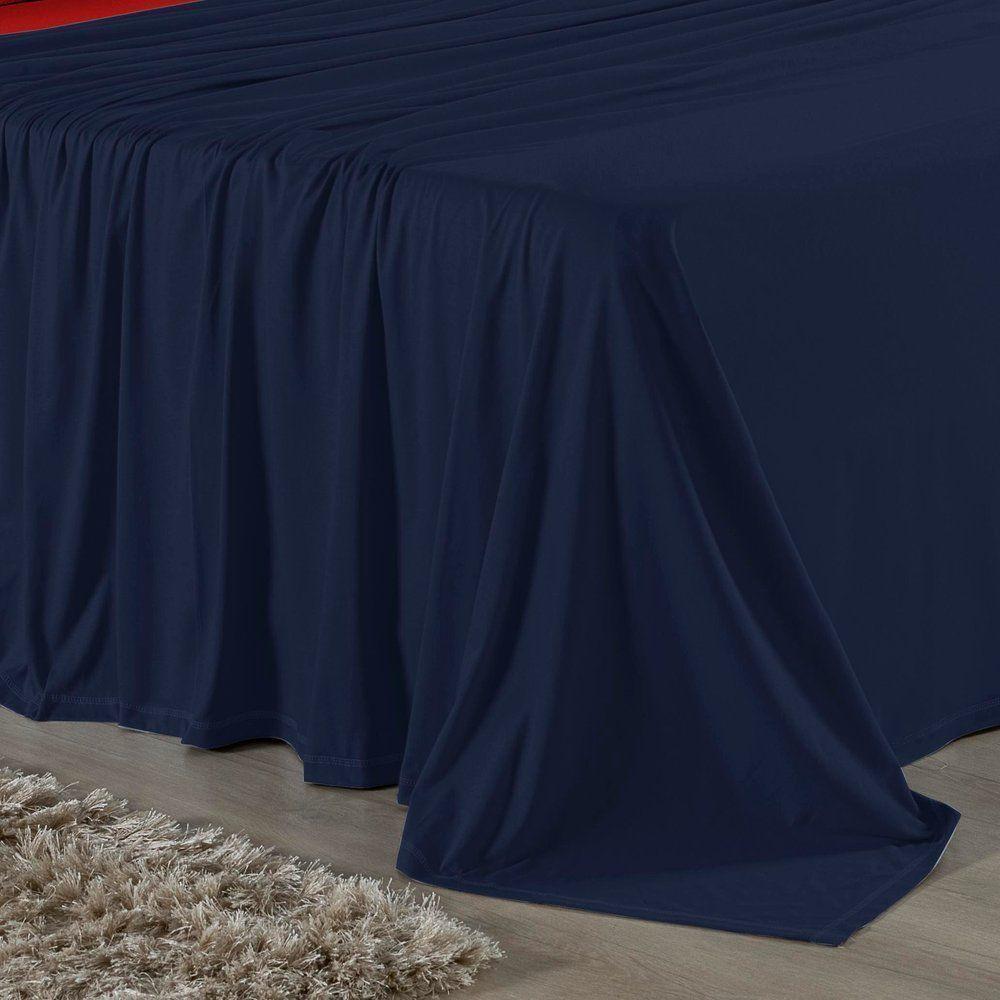 Jogo De Cama Casal Viúva Nobre 4 Peças Malha 100% Algodão - Azul-marinho / Vermelho