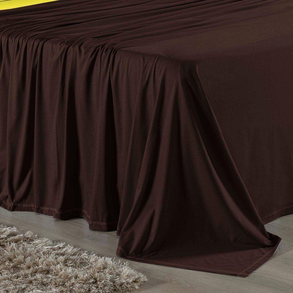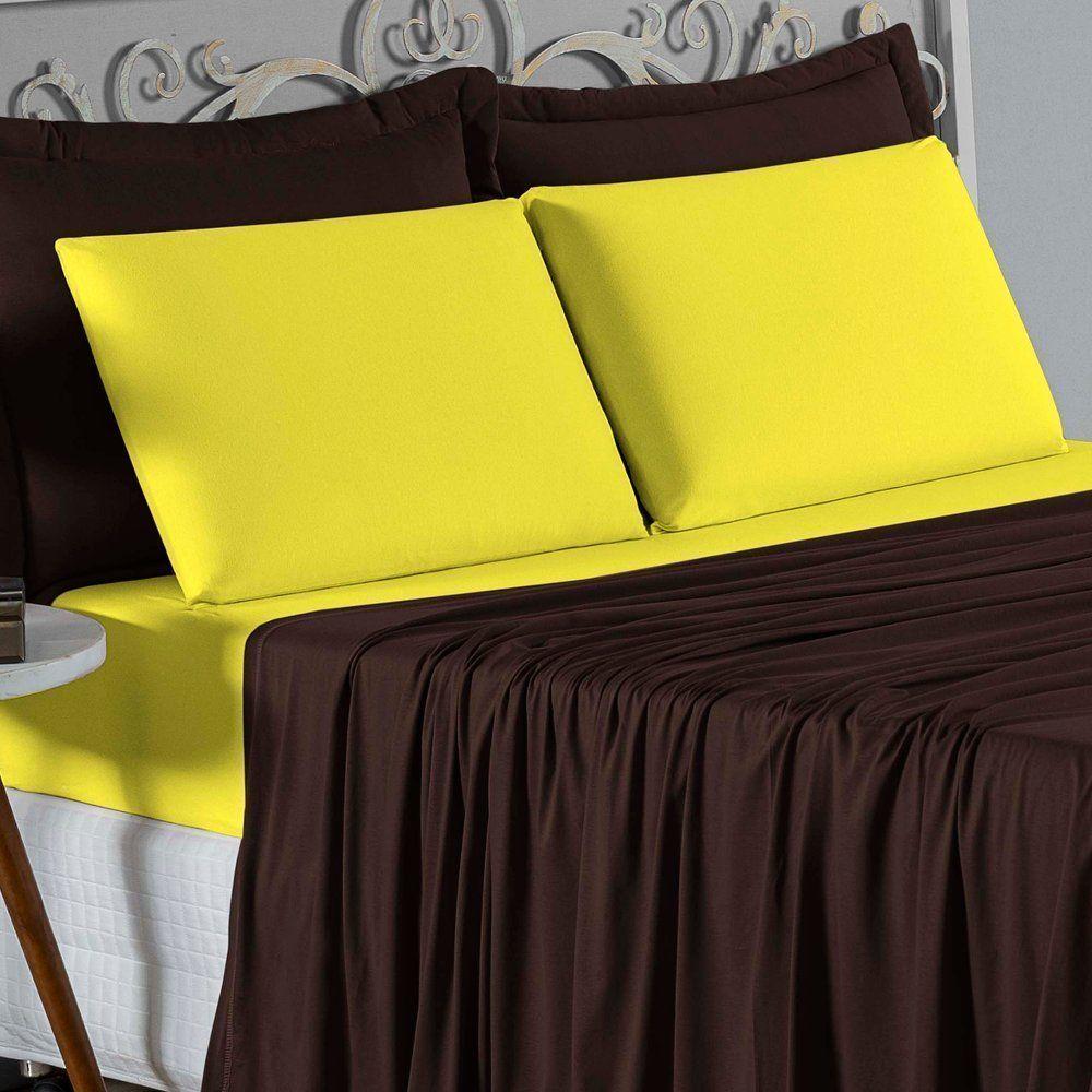 Jogo De Cama Casal Viúva Nobre 4 Peças Malha 100% Algodão - Marrom / Amarelo