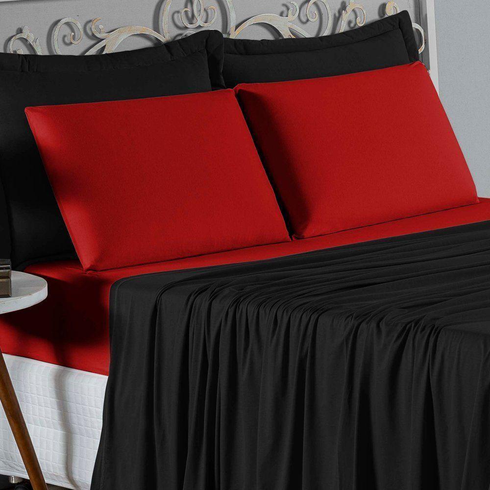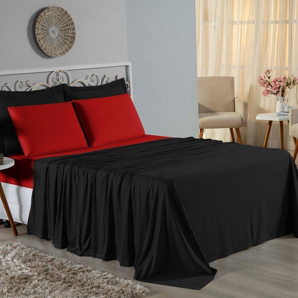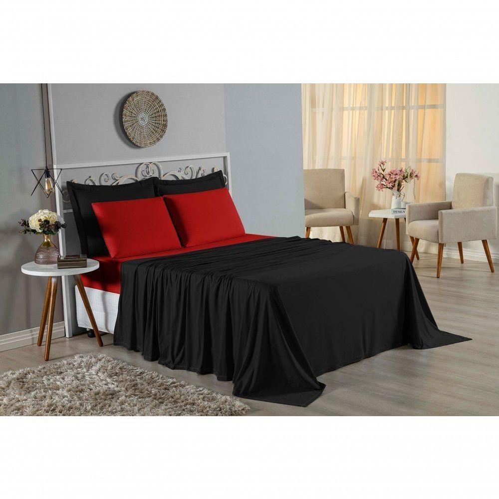 Jogo De Cama Casal Viúva Nobre 4 Peças Malha 100% Algodão - Preto / Vermelho