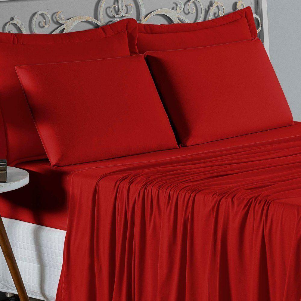 Jogo De Cama Casal Viúva Nobre 4 Peças Malha 100% Algodão - Vermelho
