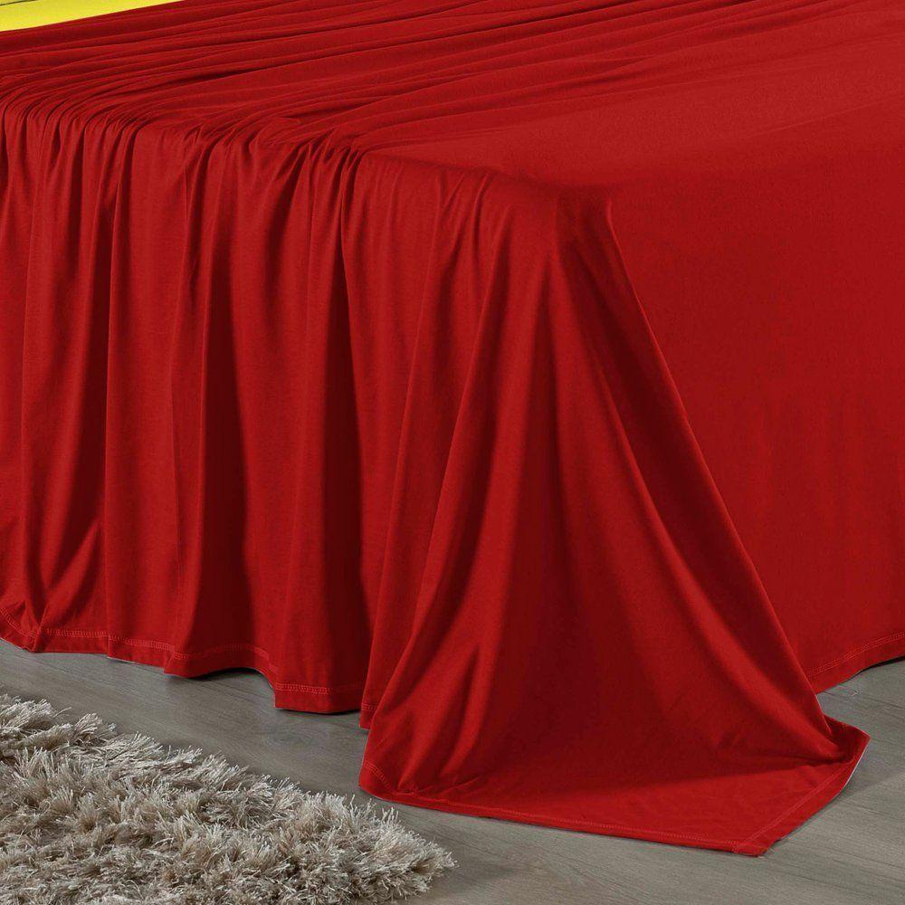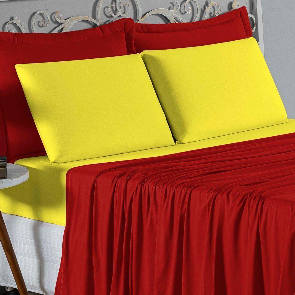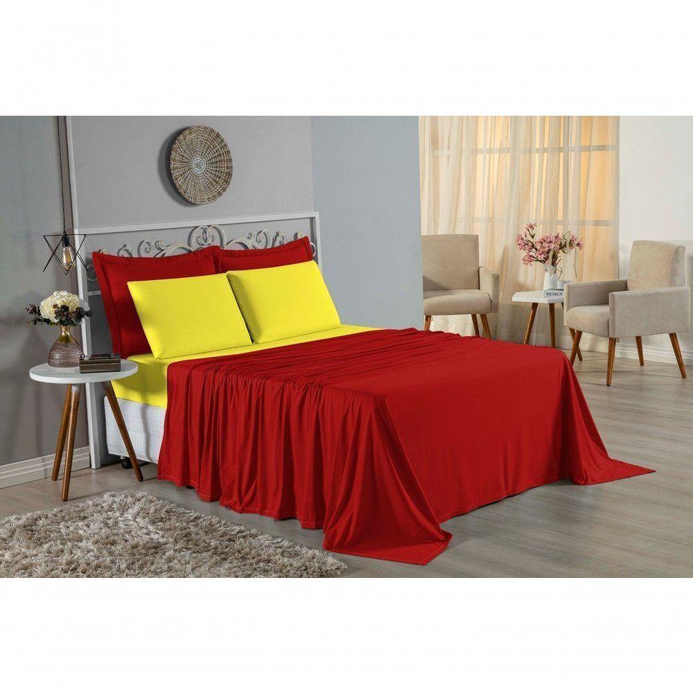 Jogo De Cama Casal Viúva Nobre 4 Peças Malha 100% Algodão - Vermelho / Amarelo