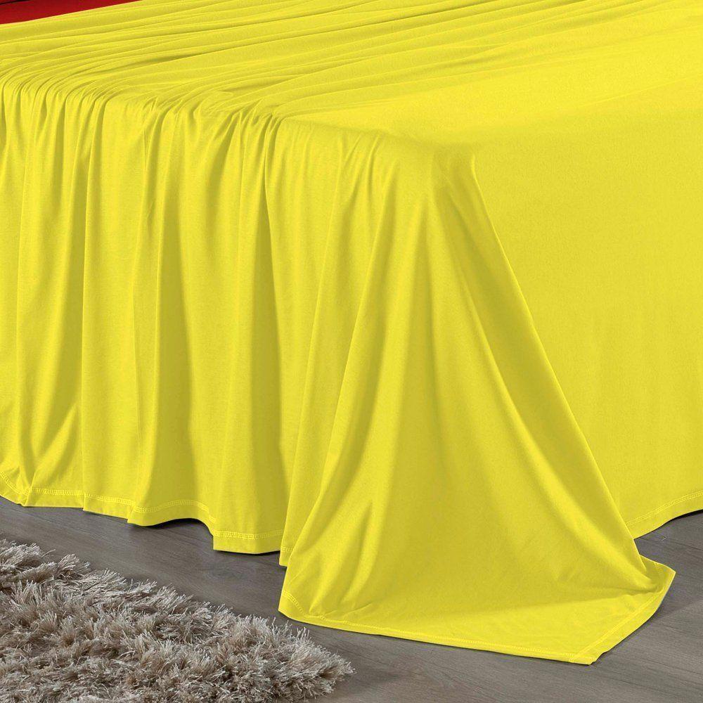 Jogo De Cama King Nobre 4 Peças Lençol Com Elástico De 30cm De Altura Malha 100% Algodão - Amarelo / Vermelho