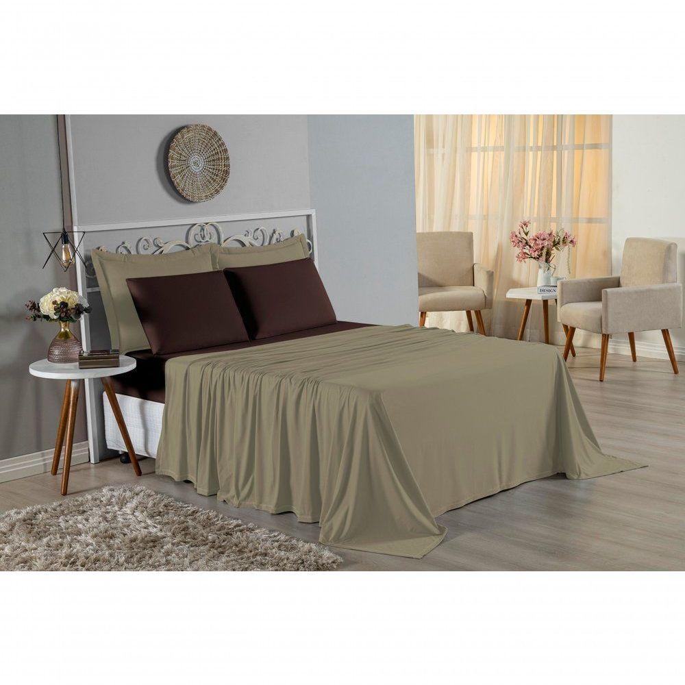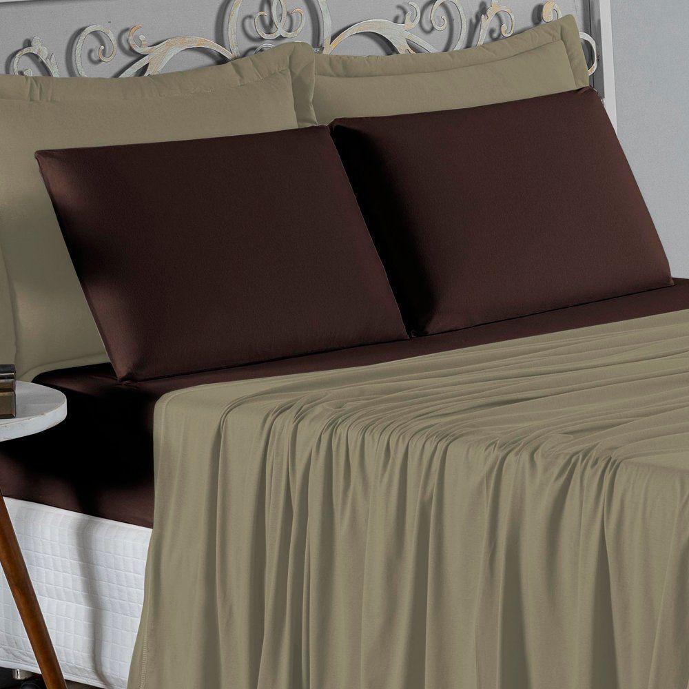 Jogo De Cama King Nobre 4 Peças Lençol Com Elástico De 30cm De Altura Malha 100% Algodão - Avelã / Marrom