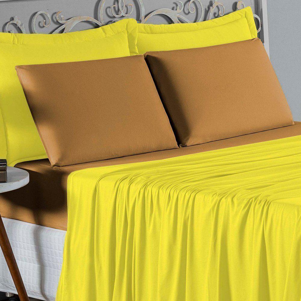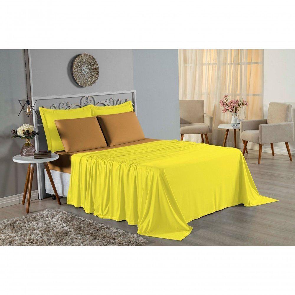 Jogo De Cama Casal Viúva Nobre 4 Peças Malha 100% Algodão - Amarelo / Cobre