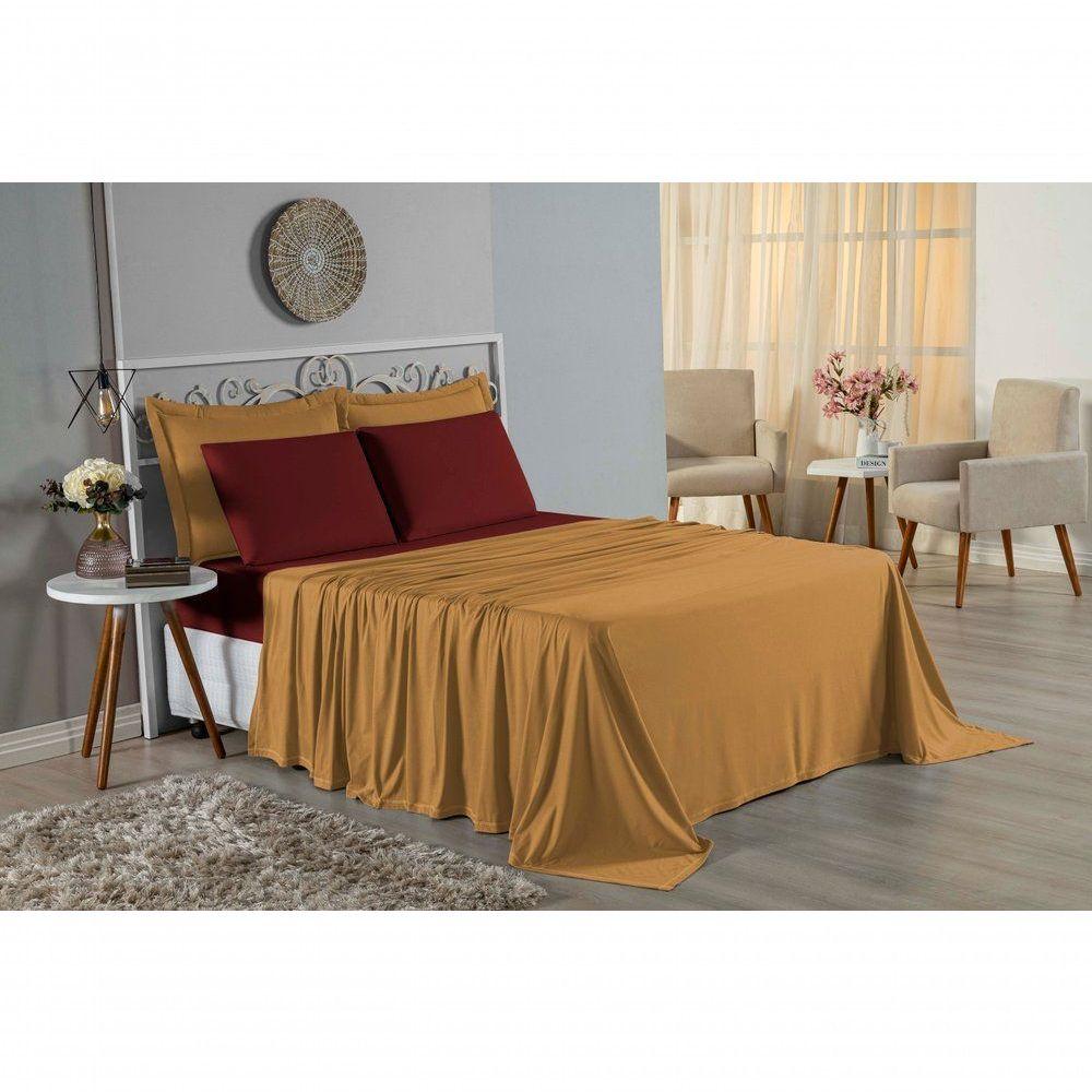 Jogo De Cama King Nobre 4 Peças Lençol Com Elástico De 30cm De Altura Malha 100% Algodão - Cobre / Vinho