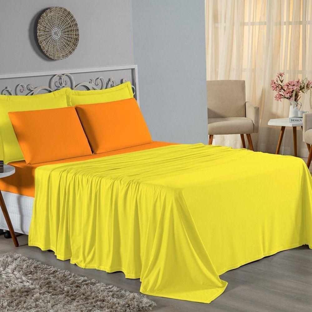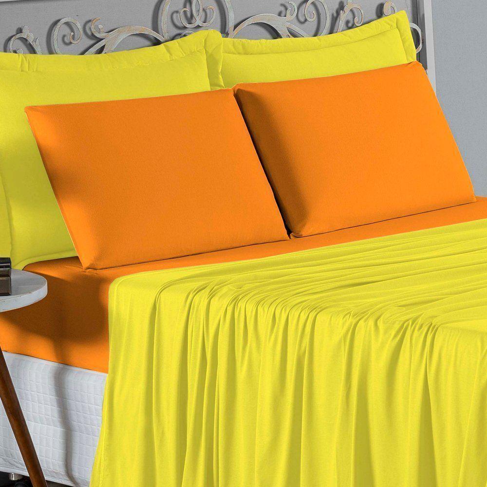Jogo De Cama Queen Nobre 4 Peças Lençol Com Elástico De 30cm De Altura Malha 100% Algodão - Amarelo / Laranja