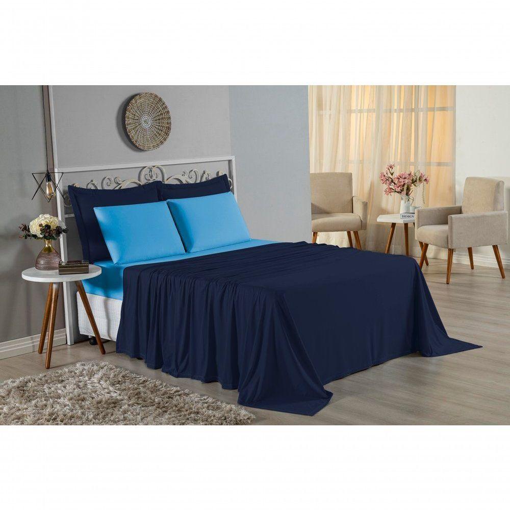 Jogo De Cama Queen Nobre 4 Peças Lençol Com Elástico De 30cm De Altura Malha 100% Algodão - Azul-marinho / TurquesaGaranta noites de sono luxuosas com o Jogo de Cama Queen Nobre 4 Peças. O equilíbrio perfeito entre beleza, conforto e a qualidade incomparável do algodão.Por que este Jogo de Cama é a escolha perfeita?- Experiência Premium: O jogo completo (com lençol de cima) permite montar a cama posta perfeita, agregando sofisticação ao quarto.- Respirabilidade e Frescor: Feito em 100% Algodão, o tecido permite que a pele respire, garantindo uma temperatura agradável durante toda a noite.- Medidas Generosas: O lençol de cima amplo (2,40m x 2,60m) oferece excelente cobertura, enquanto o lençol de baixo se ajusta a colchões Queen de até 30cm.- Resistência: Tecido robusto que não forma bolinhas com facilidade e mantém o toque suave por muito tempo.Produto composto por (Total 04 Peças):01 Lençol de Cima (Virol): 2,40m x 2,60m01 Lençol de Baixo com Elástico: 1,58m x 1,98m x 30cm02 Fronhas: 70cm x 50cmComposição:Tecido: Malha 100% Algodão - Fio 30/1 Penteado