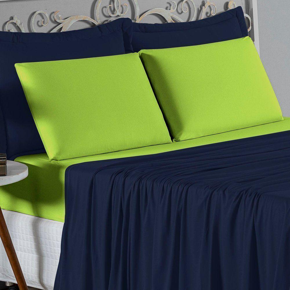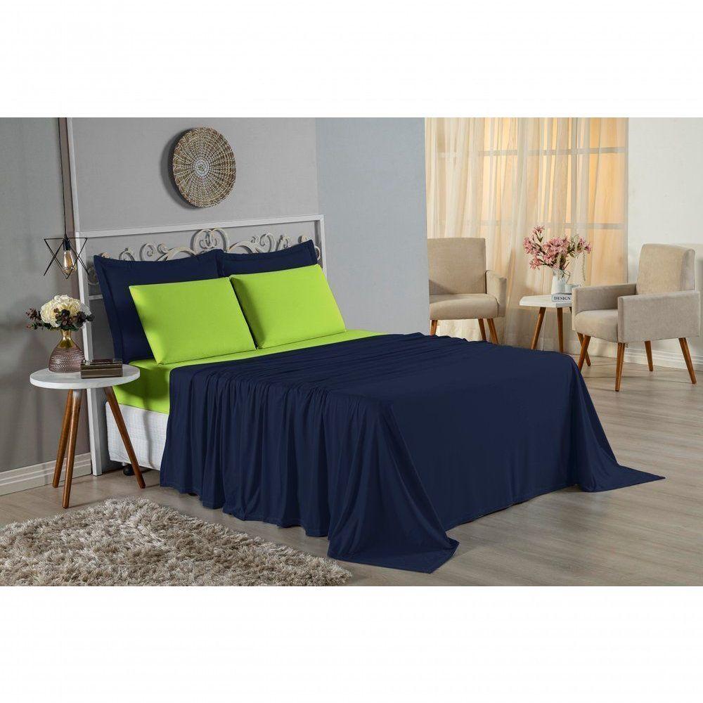 Jogo De Cama Queen Nobre 4 Peças Lençol Com Elástico De 30cm De Altura Malha 100% Algodão - Azul-marinho / Pistache