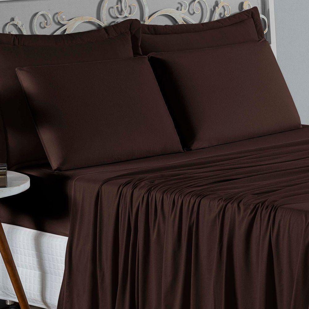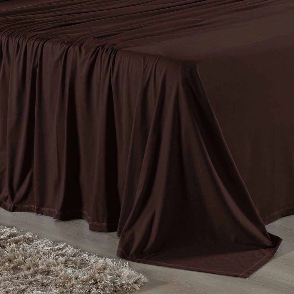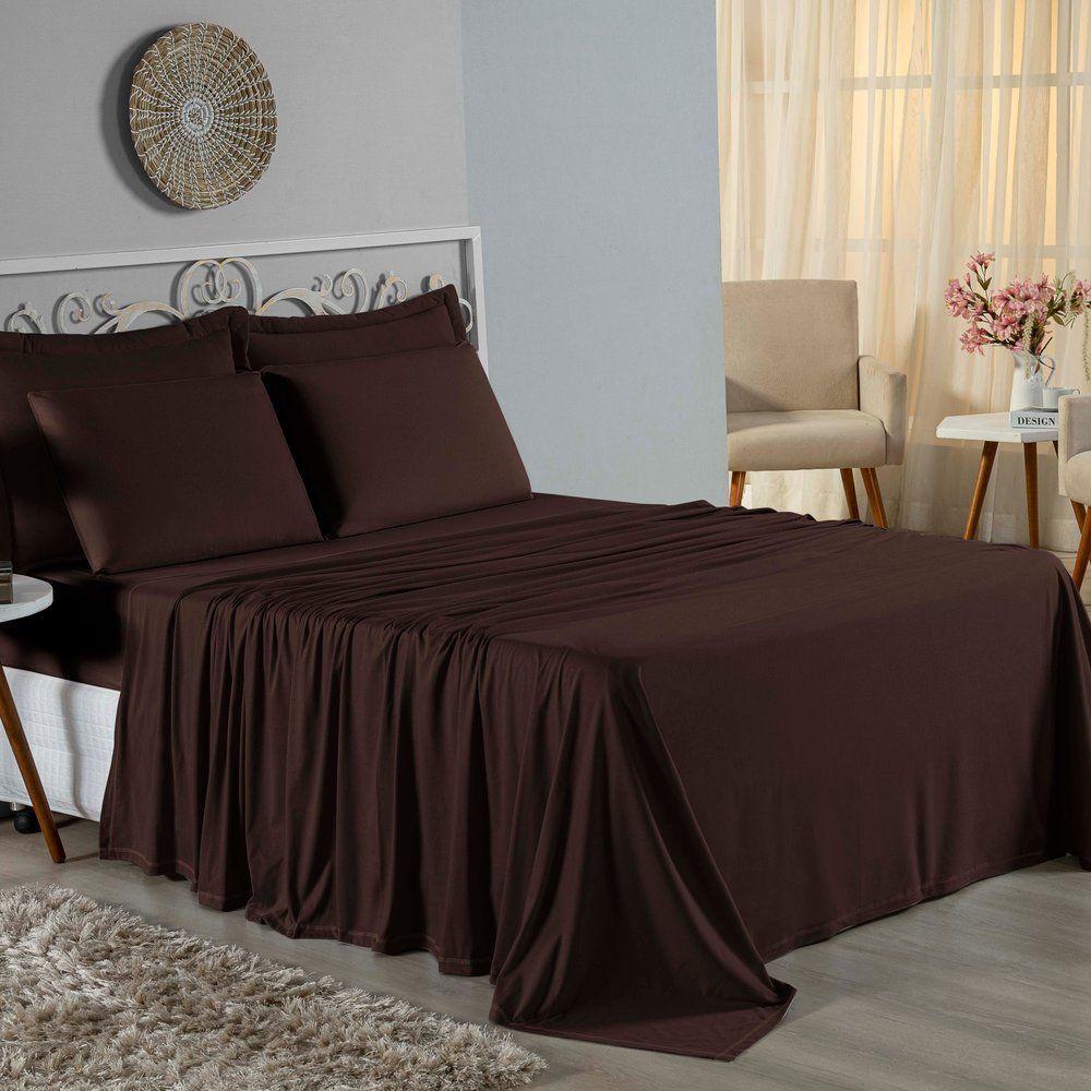 Jogo De Cama Queen Nobre 4 Peças Lençol Com Elástico De 30cm De Altura Malha 100% Algodão - Marrom