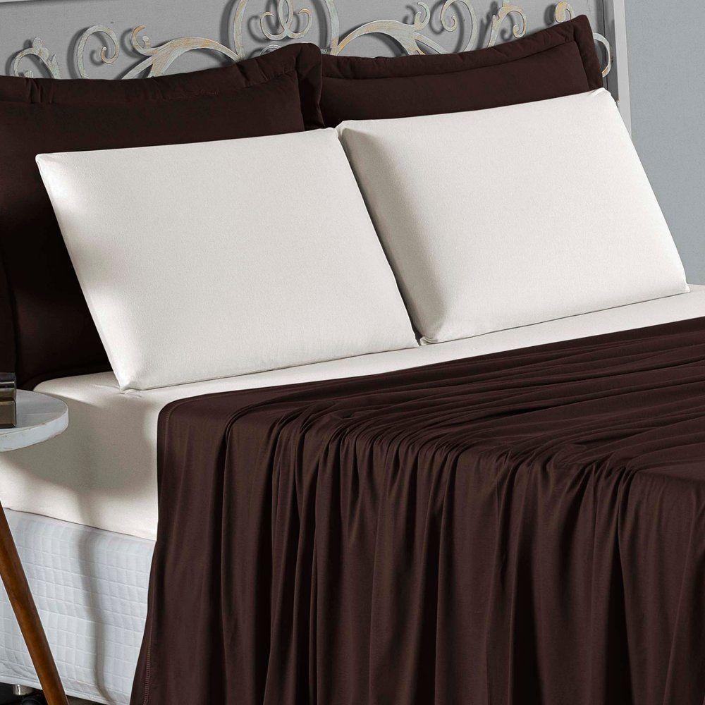 Jogo De Cama Queen Nobre 4 Peças Lençol Com Elástico De 30cm De Altura Malha 100% Algodão - Marrom / Palha