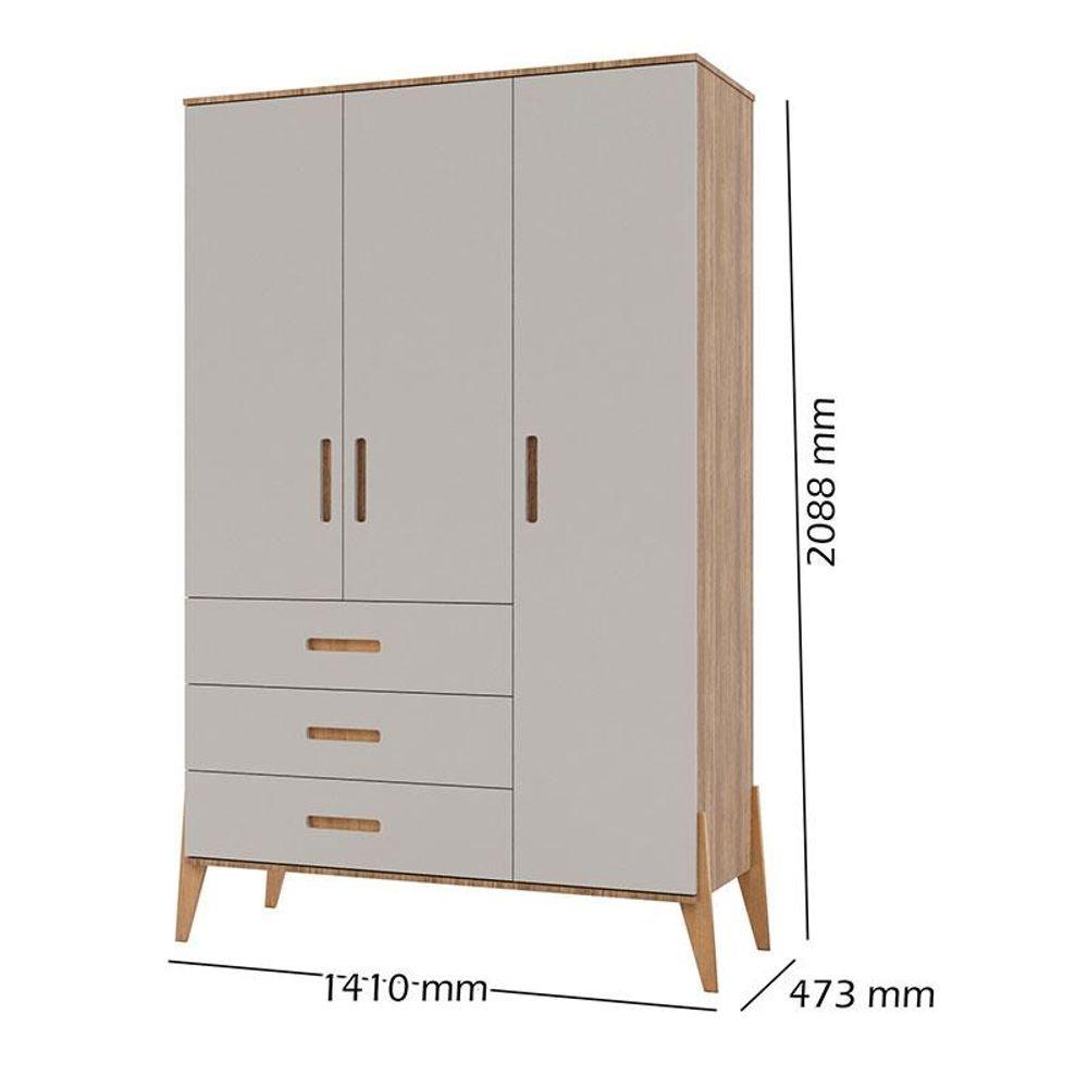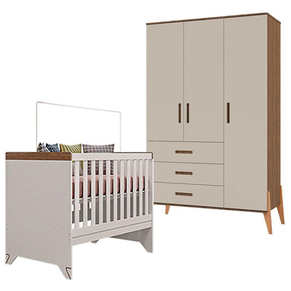 Berço Americano Retro Maya Com Guarda Roupa Infantil Emilly 3 Portas Off White Carvalho - CanaãBerço Americano Retro Maya com Guarda Roupa Infantil Emilly 3 Portas Off White Carvalho - CanaãA mamãe começou a procurar móveis para o quartinho do seu bebê? Apresentamos para você este belo conjunto composto pelo berço americano da linha Maya e o guarda roupa 3 portas da linha Emilly. Com o berço se transformando em mini cama prolongando a sua vida útil. Além disso, o guarda roupa possui três portas e três gavetas, proporcionando um ótimo espaço interno para a mamãe organizar as roupinhas e itens. Fabricados pela Canaã, são desenvolvidos em 100% MDF de qualidade, garantindo mais durabilidade e resistência sendo o conjunto perfeito para complementar o ambiente e projetado para acompanhar todas as fases de crescimento do seu filho. Confira as características:Características Técnica:Berço Americano Retro Maya Off White Carvalho – Canaã- Desenvolvida em MDF - Transforma se em Mini Cama - Pintura UV que não faz mal a saúde do bebê - Padrão americano - Cantos arredondados - Estrado com regulagens de altura - Suporta até 25kg - Acompanha suporte para mosquiteiro - Colchão recomendado 130x70 (vendido separadamente) - Lindo design Obs: Decoração não inclusa.Dimensões: Altura: 102 cm Largura: 132 cm Profundidade: 76 cmGuarda Roupa Infantil Emilly 3 Portas Off White Carvalho – Canaã - Desenvolvido em MDF - 3 Portas e 3 gavetas - Pintura UV - Dobradiça metálica - Corrediças telescópicas - Suporte para cabides em alumínio - Lindo design Obs: Decoração não inclusa.Dimensões: Altura: 210 cm Largura: 141 cm Profundidade: 47 cmInformações importantes:*Não realizamos a montagem ou instalação do produto, porém acompanha manual de instruções.