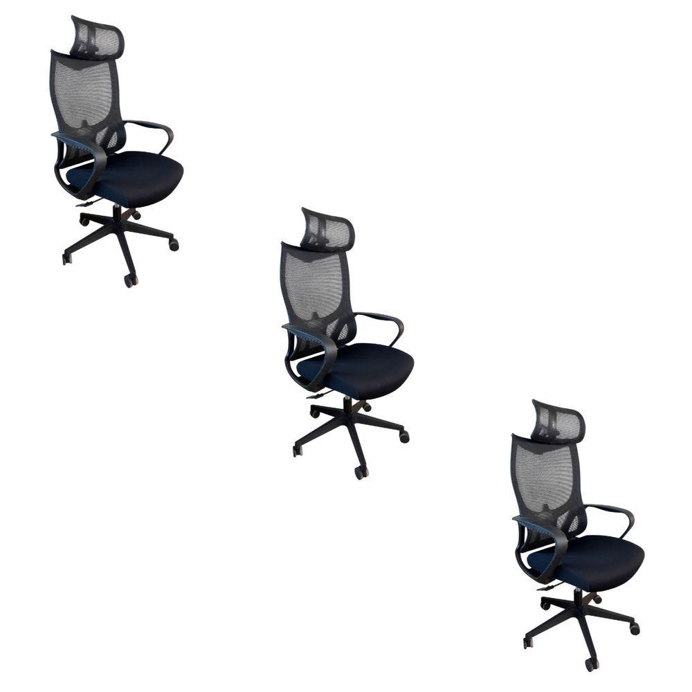 Kit 3 Cadeiras Presidente Oficial Comfort Verona Com Apoio