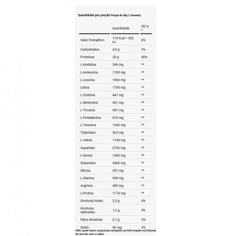 Whey Protein Concentrado Pote (900g) - Sabor: CookiesWHEY PROTEIN CONCENTRADO (900g) - DUX NUTRITION O Whey Protein Concentrado Dux Nutriton é composto por proteínas de alto valor biológico e rápida absorção, além de gorduras essenciais, carboidratos e uma ampla gama de aminoácidos, fundamentais para garantir a síntese muscular acelerada após a prática de esportes. É ideal para ser consumido antes e depois de treinos, mas também pode fazer parte do café da manhã ou servir como um lanche entre as refeições, e em outros momentos conforme a orientação do seu nutricionista. Se há um nutriente indispensável, é a proteína. Ela é feita de aminoácidos, que são os blocos de construção do nosso corpo. A proteína do soro do leite, em inglês “Whey Protein”, é uma das fontes de aminoácidos de melhor absorção, maior até que o frango ou peixe. Isso torna o Whey uma forma conveniente de ingerir proteína, melhorando a saúde, o bem-estar e os resultados dos treinos. BENEFÍCIOS: * Não contém goma xantana, complexos vitamínicos à base de maltodextrina, espessantes, estabilizantes, conservantes ou qualquer outro ingrediente inferior;* Contém corantes 100% naturais, sem ingredientes artificiais;* O nome diz tudo: Whey Protein Concentrado 100% puro, com transparência total, do nome do produto à lista de ingredientes;* Matéria-prima premium importada, com alto teor de leucina, desenvolvida para criar um produto com sabor real e marcante;* Valores nutricionais robustos, sem excessos, com quantidades ideais de carboidratos e gorduras do leite;* 20g de proteína;* Proteína moderna, desenvolvida por especialistas para atletas de esportes de performance (bodybuilding, crossfit e artes marciais), pessoas que buscam uma proteína com baixa caloria (para snacks fit e receitas sem culpa) e pessoas que buscam uma proteína ultrapura de altíssima qualidade.Informação Nutricional Whey Protein Concentrado (900g) - Dux Nutrition- BaunilhaPorção de 28g (1 medidor)Quantidade por porção%VD(*)Valor Energético120kcal = 506kJ6%Carboidratos5g2%Proteínas20g40%Gorduras Totais2,2g4%Gorduras Saturadas1,1g5%Sódio66mg3%* % Valores Diários com base em uma dieta de 2.000Kcal ou 8400kJ. Seus valores diários podem ser maiores ou menores dependendo das suas necessidades energéticas. Informação Nutricional Whey Protein Concentrado (900g) - Dux Nutrition- Chocolate 30 g% VD*Valor energético (kcal)1226%Carboidratos (g)5,42%Açúcares totais (g)4,3 Açúcares adicionados (g)00%Proteínas (g)2040%Histidina (mg)400 Isoleucina (mg)1200 Leucina (mg)2200 Lisina (mg)1900 Cisteína (mg)400 Metionina (mg)400 Tirosina (mg)400 Fenilalanina (mg)700 Treonina (mg)1500 Triptofano (mg)300 Valina (mg)1200 Aspartato (mg)2200 Serina (mg)1000 Glutamina (mg)3500 Glicina (mg)400 Alanina (mg)1000 Arginina (mg)400 Prolina (mg)1200 Gorduras totais (g)2,34%Gorduras saturadas (g)1,47%Fibras alimentares (g)0,73%Sódio (mg)1075% Informação Nutricional Whey Protein Concentrado (900g) - Dux NutritionCocoPorção de 28g (1 medidor)Quantidade por porção%VD(*)Valor Energético120kcal = 506kJ6%Carboidratos5g2%Proteínas20g40%Gorduras Totais2,2g4%Gorduras Saturadas1,1g5%Sódio66mg3%* % Valores Diários com base em uma dieta de 2.000Kcal ou 8400kJ. Seus valores diários podem ser maiores ou menores dependendo das suas necessidades energéticas. Informação Nutricional Whey Protein Concentrado (900g) - Dux Nutrition CookiesPorção de 29g (1 medidor)Quantidade por porção%VD(*)Valor Energético117kcal = 489kJ6%Carboidratos4,5g1%Proteínas20g27%Gorduras Totais2,1g4%Gorduras Saturadas1,0g4%Gorduras trans0g**Fibra Alimentar0g0%Sódio96mg5%* % Valores Diários com base em uma dieta de 2.000Kcal ou 8400kJ. Seus valores diários podem ser maiores ou menores dependendo das suas necessidades energéticas. Informação Nutricional Whey Protein Concentrado (900g) - Dux NutritionSabor: MorangoPorção de 28g (1 medidor)Quantidade por porção%VD(*)Valor Energético112kcal=468 kJ6%Carboidratos3,6g1%Proteínas20g27%Gorduras Totais1,8g4%Gorduras Saturadas0,8g5%Gorduras trans0g**Fibra Alimentar0g0%Sódio56mg2%* % Valores Diários com base em uma dieta de 2.000Kcal ou 8400kJ. Seus valores diários podem ser maiores ou menores dependendo das suas necessidades energéticas. Informação Nutricional Whey Protein Concentrado (900g) - Dux NutritionSabor: CappuccinoPorção de 28g (1 medidor)Quantidade por porção%VD(*)Valor Energético109kcal = 458kJ5%Carboidratos1,9g1%Proteínas24g32%Gorduras Totais0g0%Gorduras Saturadas0g0%Gorduras trans0g**Fibra Alimentar0g0%Sódio65mg3%* % Valores Diários com base em uma dieta de 2.000Kcal ou 8400kJ. Seus valores diários podem ser maiores ou menores dependendo das suas necessidades energéticas. Obs: Pode haver pequenas variações na informação nutricional, de acordo com o sabor.** VD não estabelecido. Informação Nutricional Whey Protein Concentrado (900g) - Dux NutritionSabor: Sem saborPorção de 25g (1 medidor)Quantidade por porção%VD(*)Valor Energético99kcal = 416kJ5%Carboidratos2,2g1%Proteínas20g27%Gorduras Totais1,1g2%Gorduras Saturadas1,1g5%Gorduras trans0g**Fibra Alimentar0g0%Sódio41mg2%* % Valores Diários com base em uma dieta de 2.000Kcal ou 8400kJ. Seus valores diários podem ser maiores ou menores dependendo das suas necessidades energéticas. Informação Nutricional Whey Protein Concentrado (900g) - Dux NutritionSabor: Butter CookiesPorção de 30g (1 medidor)Quantidade por porção%VD(*)Valor Energético127kcal6%Carboidratos6,5g2%Açúcares totais5,2g Açúcares adicionados0,5g1%Proteínas20g40%L-histidina400mg L-Isoleucina1200mg L-Leucina2100mg Lisina1800mg L-Cisteina400mg Metionina400mg Tirosina400mg Fenilalanina700mg Treonina1400mg Triptofano300mg Valina1200mg Aspartato2100mg Serina1000mg Glutamina3400mg Glicina400mg Alanina1000mg Arginina400mg Prolina1100mg Gorduras Totais2,4g4%Gorduras Saturadas1,2g7%Sódio68mg6%Não contém quantidades significativas de gordu