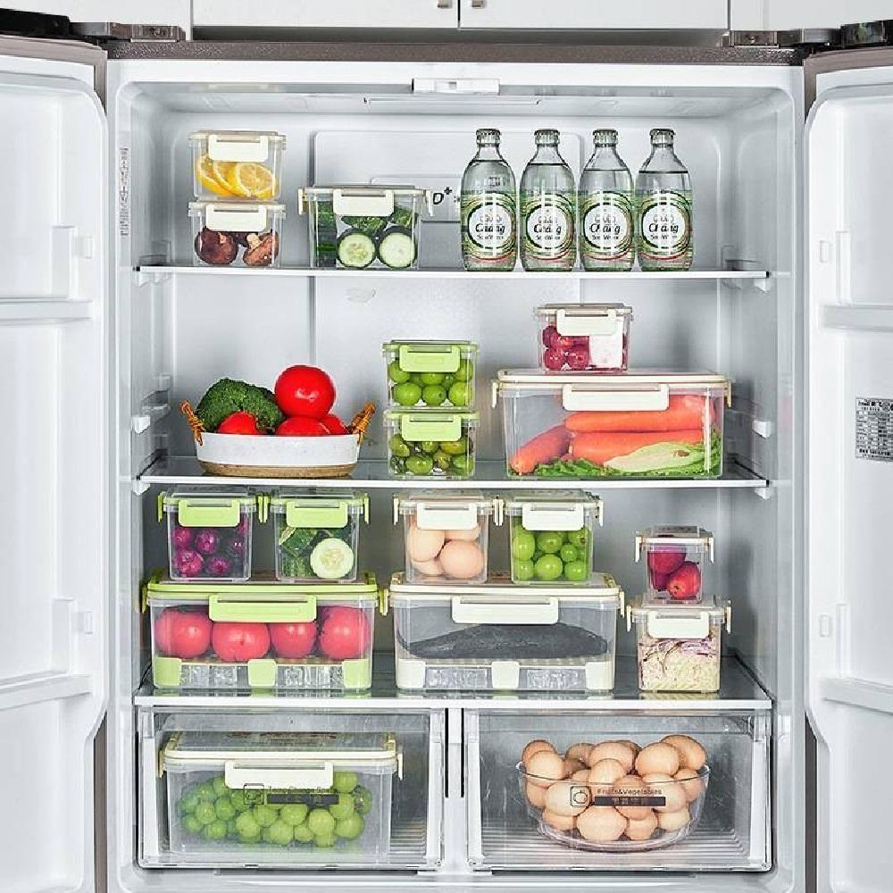 Kit 5 Potes Hermeticos Organizador Trava Lateral Geladeira Multifuncional Cesto Separador Agua