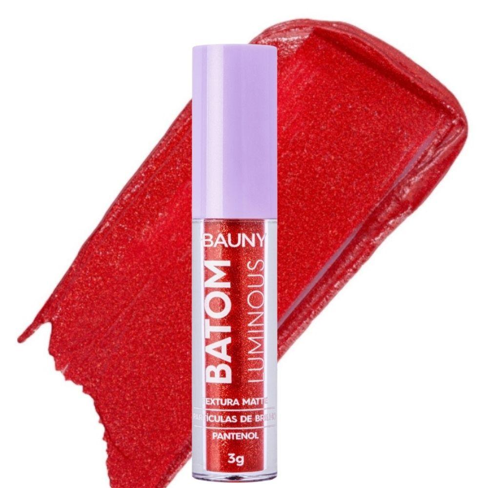 Bauny Batom Líquido Luminous 3g Cor: Cherry LuminousBAUNYBauny Cosméticos está chegou em 2022 para transformar tudo. O mercado, a sua beleza e o mundo ao seu redor. São produtos multifuncionais, com alta tecnologia e qualidade, oferecidos com excelente custo-benefício.SOBRE O PRODUTOO batom líquido Luminous by Bauny é um batom líquido matte com brilho, que é ativado e potencializado após a secagem completa e fricção dos lábios.Sua ultra fina de alta performance é enriquecida com potentes ativos hidratantes como a de Karitê e o Pantenol (1,5% de concentração para cada ativo), promovendo extremo conforto durante a aplicação e após a secagem.Seu aplicador anatômico permite o contorno e preenchimento do lábio com precisão e praticidade.Modo de usar:Nos lábios: aplique o batom sobre os lábios até obter a cobertura desejada e espere secar totalmente. Potencialize o efeito do brilho pressionando os lábios levemente, sem esfregar.Nos olhos: aplique o produto até obter a cobertura desejada e esfume ainda molhado para obter melhor performance.Ingredientes:Isododecane/Isododecano, Trimethylsiloxysilicate/Trimetilsiloxisilicato, Cyclopentasiloxane/Decametilciclopentasiloxano, Disteardimonium Hectorite/Disteardimonio de Hectorita, Propylene Carbonate/Carbonato de Propileno, Polyisobutene/Poliisobuteno, Candelilla Cera/Cera de Euphorbia Cerifera, Butyrospermum Parkii Butter/ de Butyrospermum Parkii, Panthenol/Pantenol, Caprylic/Capric Triglyceride/Triglicerídeos de Cadeia Média, Zinc Stearate/Estearato de , Dimethicone/Dimeticona, Sodium Saccharin/Sacarina Sódica, Propylene Glycol/Propilenoglicol, Tocopheryl Acetate/Acetato de Racealfatocoferol, Phenoxyethanol/Fenoxietanol, Aroma/Aroma. Pode Conter: CI 15850/Vermelho 6, CI 77019/Mica, CI 77491/Óxido de Ferro Vermelho, CI 77492/Óxido de Ferro Amarelo, CI 77499/Óxido de Ferro Preto, CI 77891/Dióxido de Titânio, Calcium Sodium Borosilicate/ Borosilicato de Cálcio e Sódio, Tin Oxide/Dióxido de Estanho. Não contém glúten. Vegano, livre de parabenos.Escolha a sua preferida:Cor: Cherry Luminous, Chic Luminous, Classic Luminous e Honey LuminousSOBRE A -Desde 2018, nosso objetivo é levar beleza a todas as mulheres da nossa .Todos os nossos produtos são 100% , com respaldo de todos os nossos fornecedores e garantia de procedência e os importados possuem selo de qualidade assegurada pela ADIPEC.Aqui cuidamos com excelência do que temos de melhor: nossa autoestima!Para nós cuidar de você não é custo, é investimento!Pedidos confirmados até as 16:00 horas sendo dia útil será postado no mesmo dia! em até 7 dias somente com o produto lacrado!Esperamos sua compra e seja bem-vindo ao nosso universo da beleza!