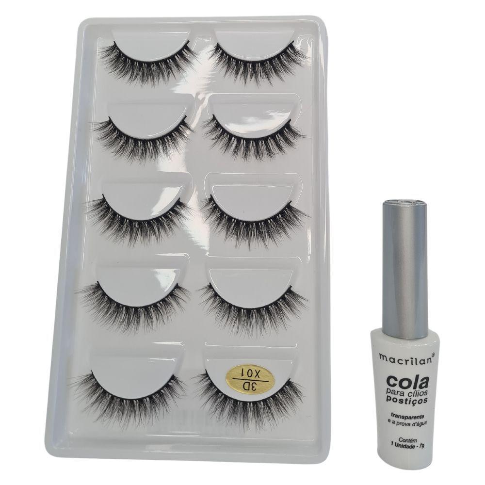Kit Macrilan Cola Cílios Postiços+cílios 3d 5 Pares X01