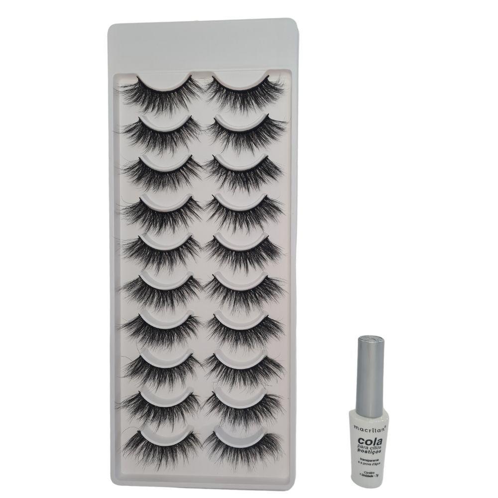 Kit Macrilan Cola Cílios Postiços+cílios 3d 10 Pares 8d003