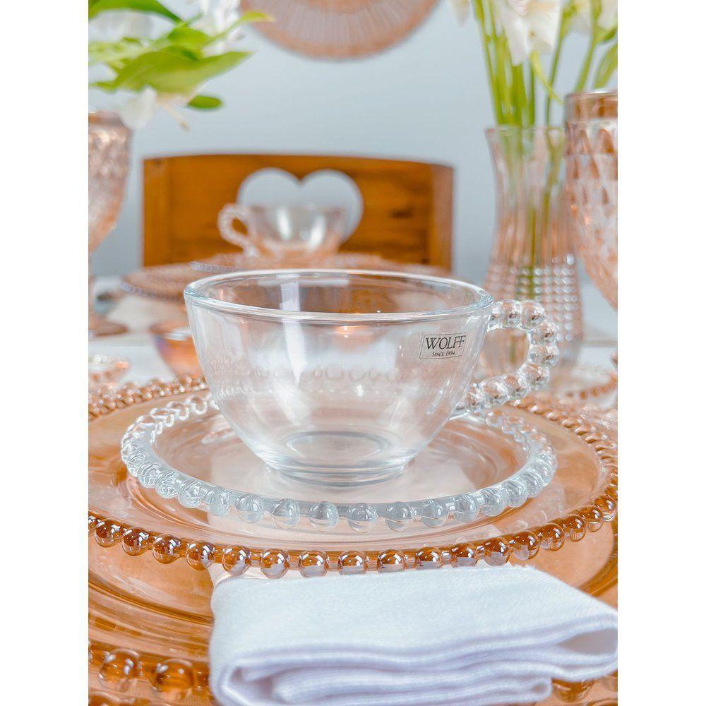 Kit 4 Xícaras Com Pires + 4 Pratos Sobremesa + 4 Pratos Jantar Pearl Wolff Transparente