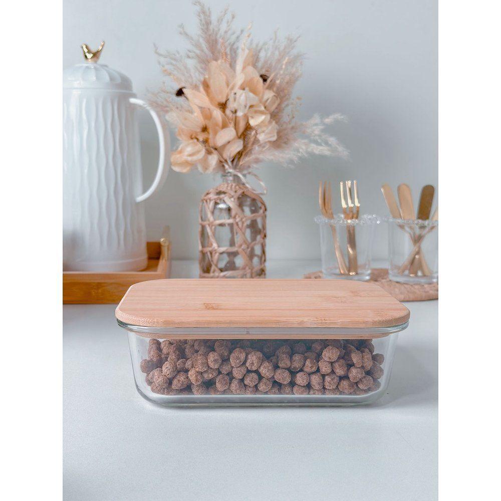 Pote De Vidro Com Tampa Em Bambu Retangular 1040 Ml