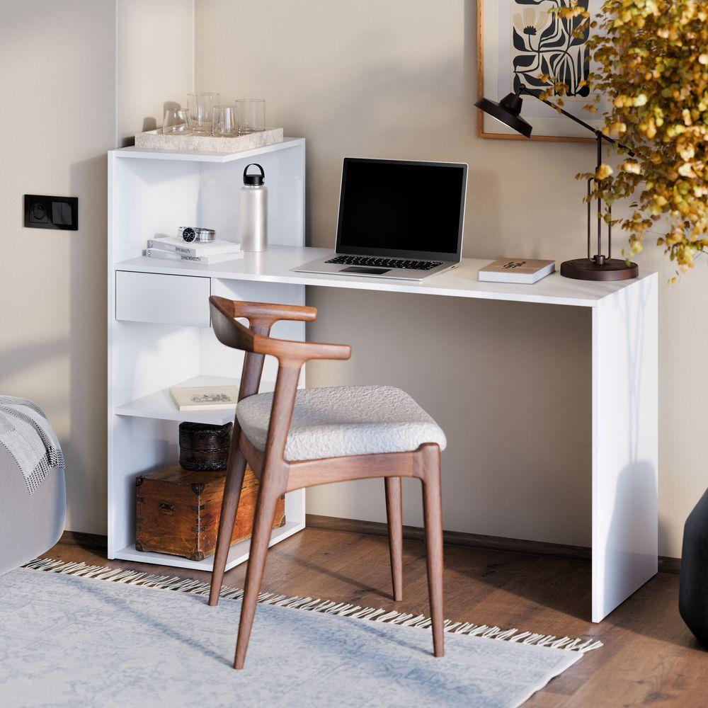 Mesa Escrivaninha Euro Para Home Office E Quarto Com Gaveta E Prateleiras