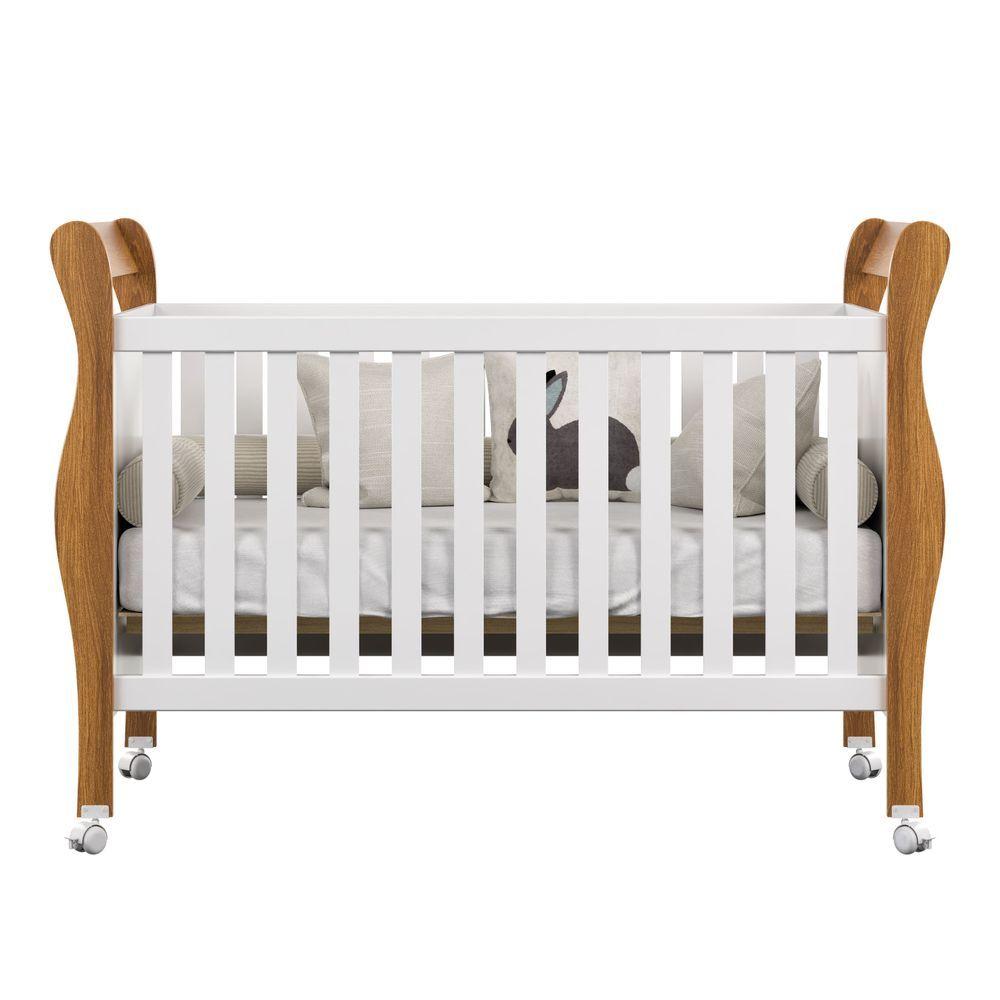 Berço Americano Slim Com Colchão E Rodízios 100% Em Mdf Branco Amadeirado