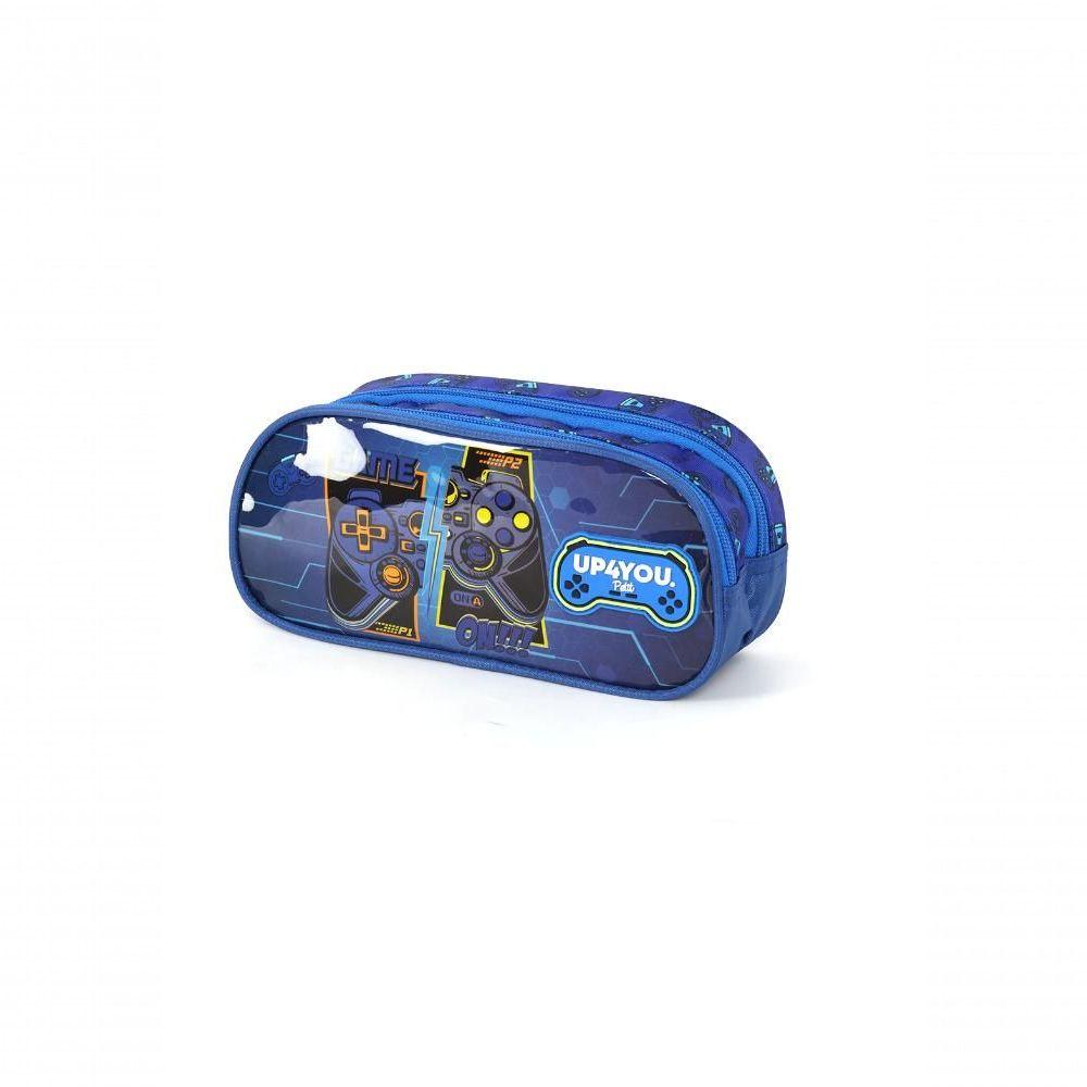 Estojo Up4you Azul - Unico AzulO Estojo Infantil Up4you modelo EI42094UP duplo foi desenvolvido para garantir organização, praticidade e estilo no dia a dia escolar das crianças. Com design divertido e estampa temática de games, o modelo reflete o universo criativo e moderno da linha Up4you Kids.Com dimensões de 22 x 10 x 7 cm e capacidade aproximada de 3 litros, é classificado como estojo médio, ideal para armazenar lápis, canetas, borrachas e outros acessórios escolares de forma organizada e acessível.Entre seus diferenciais, destacam-se o zíper personalizado, o acabamento reforçado e o formato duplo, que garante mais espaço e praticidade no uso diário. Fabricado em poliéster resistente, o estojo é leve, funcional e fácil de transportar — perfeito para acompanhar a rotina escolar.Dicas de uso: ideal para escola, reforço ou atividades extracurriculares, oferecendo organização e praticidade para o público infantil.Dicas de limpeza: limpar com pano macio levemente umedecido em água e sabão neutro. Evite produtos químicos agressivos, escovas de cerdas duras e imersão em água, para manter a estampa e o acabamento preservados.Certificação Inmetro: 005840/2025. Coleção: Up4you | Garantia: 6 meses | Origem: Importados | Tempo de Garantia: 6 | Peso real: 0.3 | Modelo: EI42094UP | Gênero: Masculino | Comprimento real: 7 | Altura real: 22 | Material: Poliester | Largura real: 10 Cor: Azul