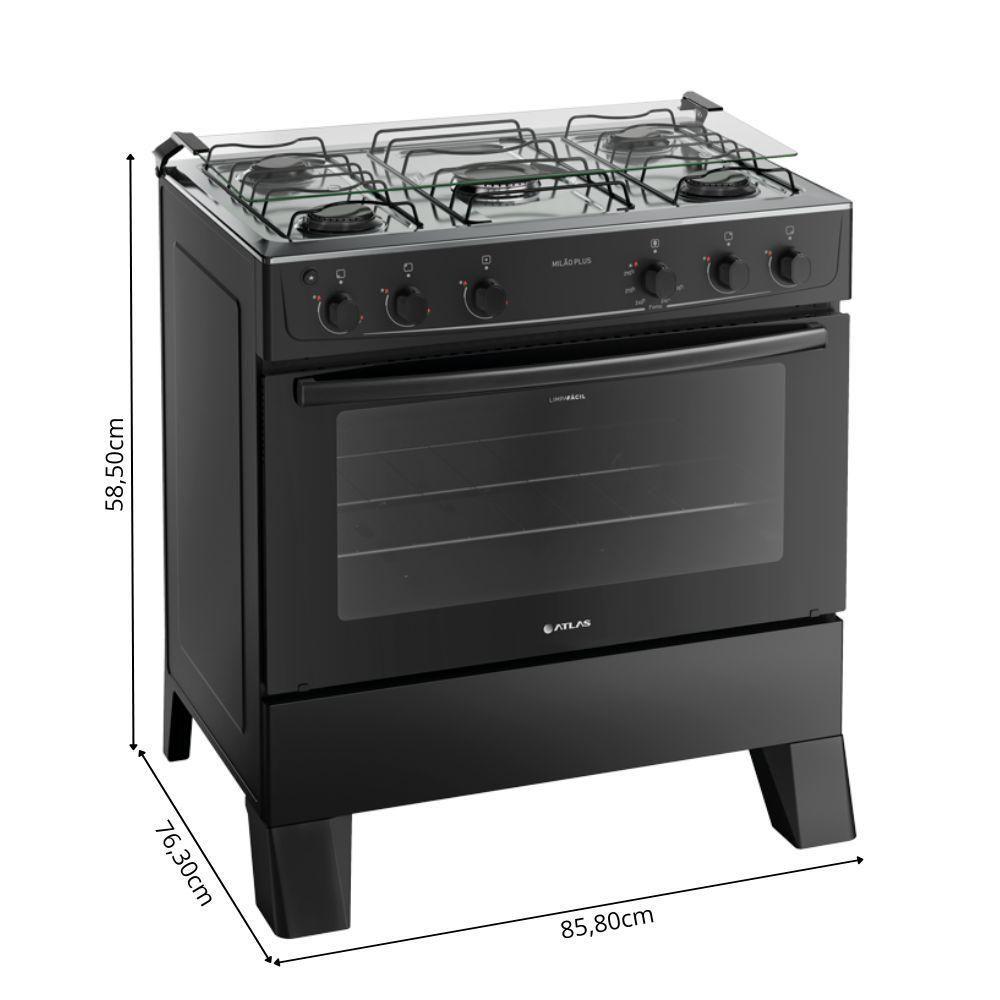 Fogão 5 Bocas Atlas Automático Milão Plus Preto Bivolt