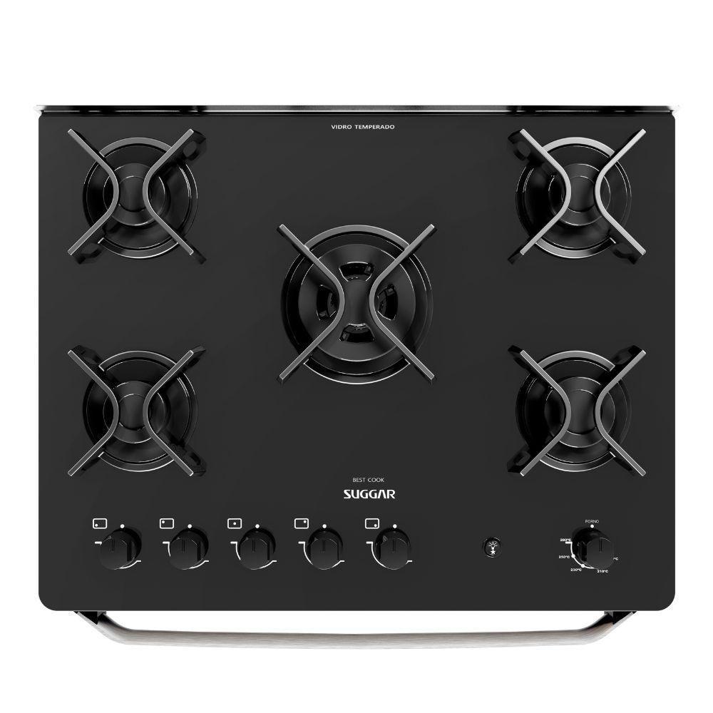 Fogão 5 Bocas Suggar Automático Mesa De Vidro Best Glass Preto Bivolt