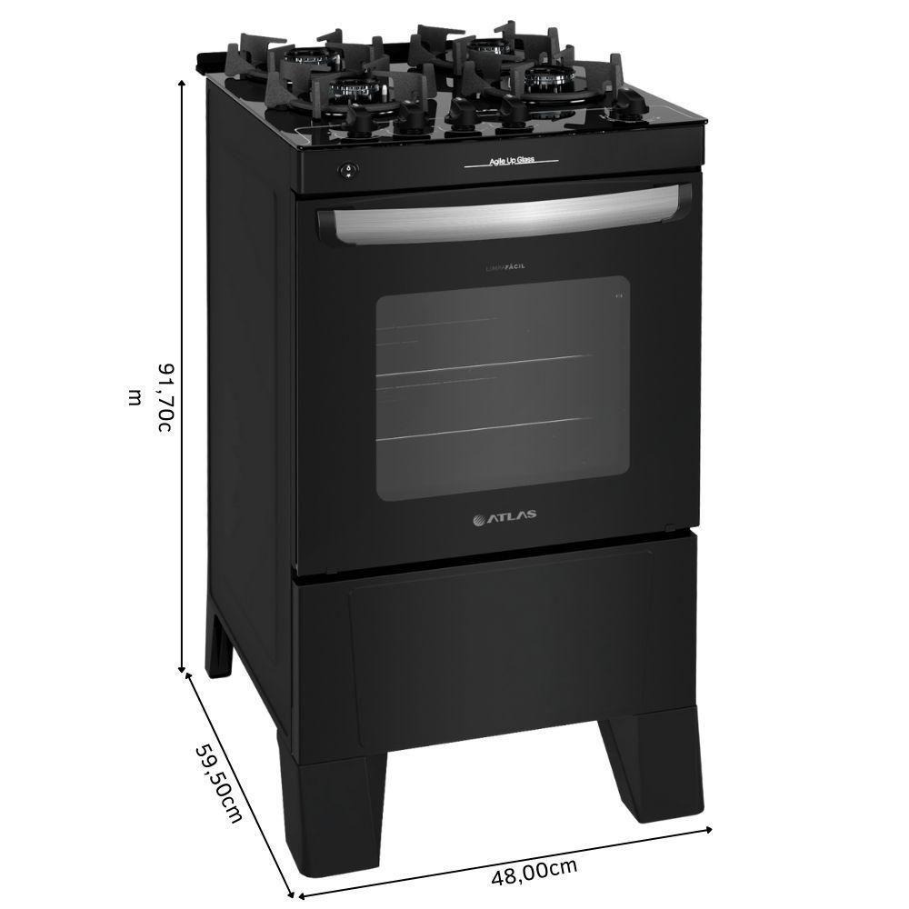 Fogão 4 Bocas Atlas Automático Agile Up Glass Preto Bivolt
